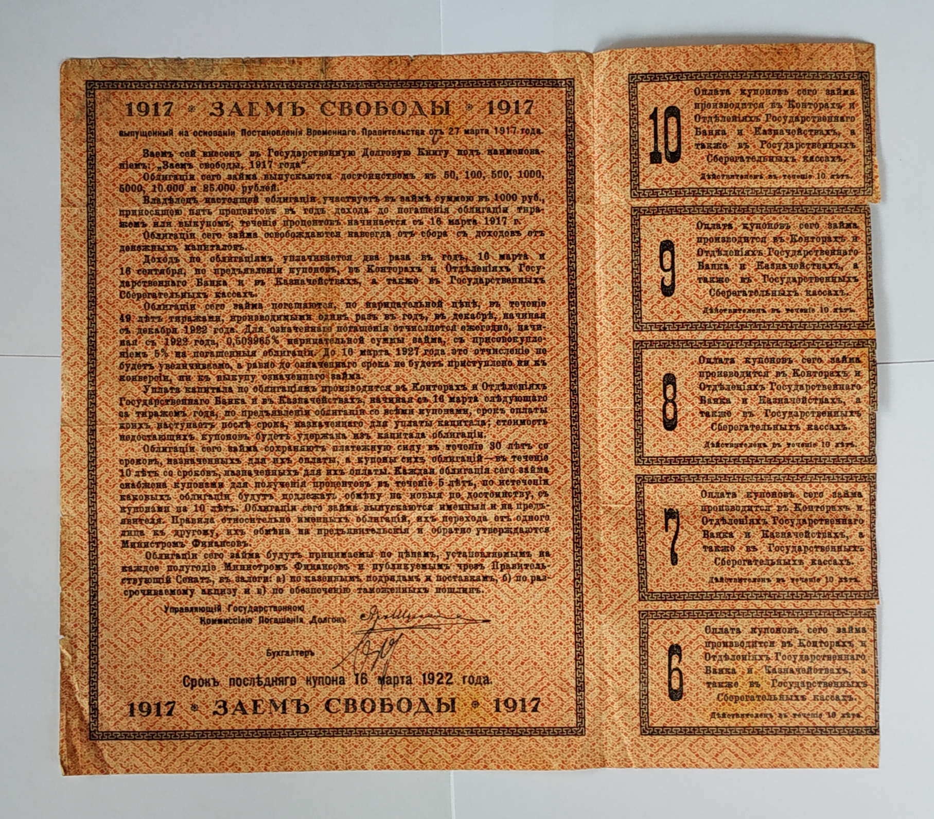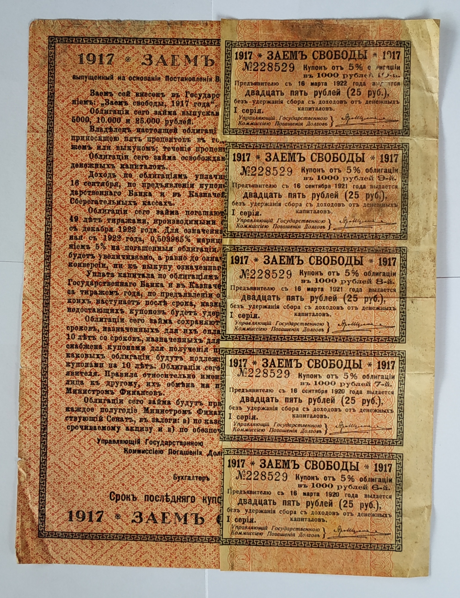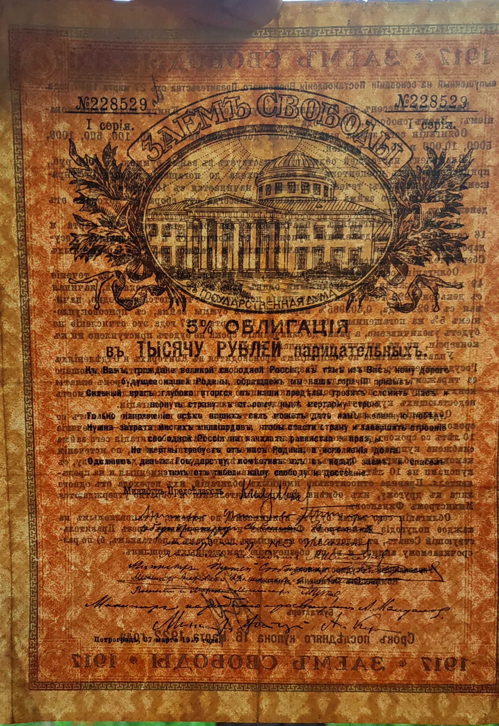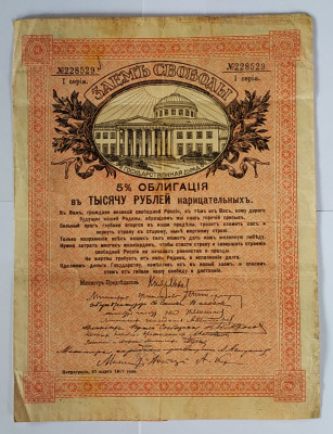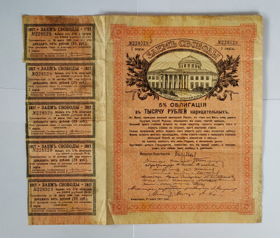 Заем свободы. 5% облигация в 1000 рублей 1917 года.