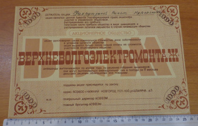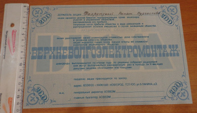 Именные акции, Без перегибов, unc- пресс по любым стандартам, размеры 260Х170 мм Доставка заказной почтой в любую страну за счет покупателя. (В Нижнем Новгороде возможен самовывоз)