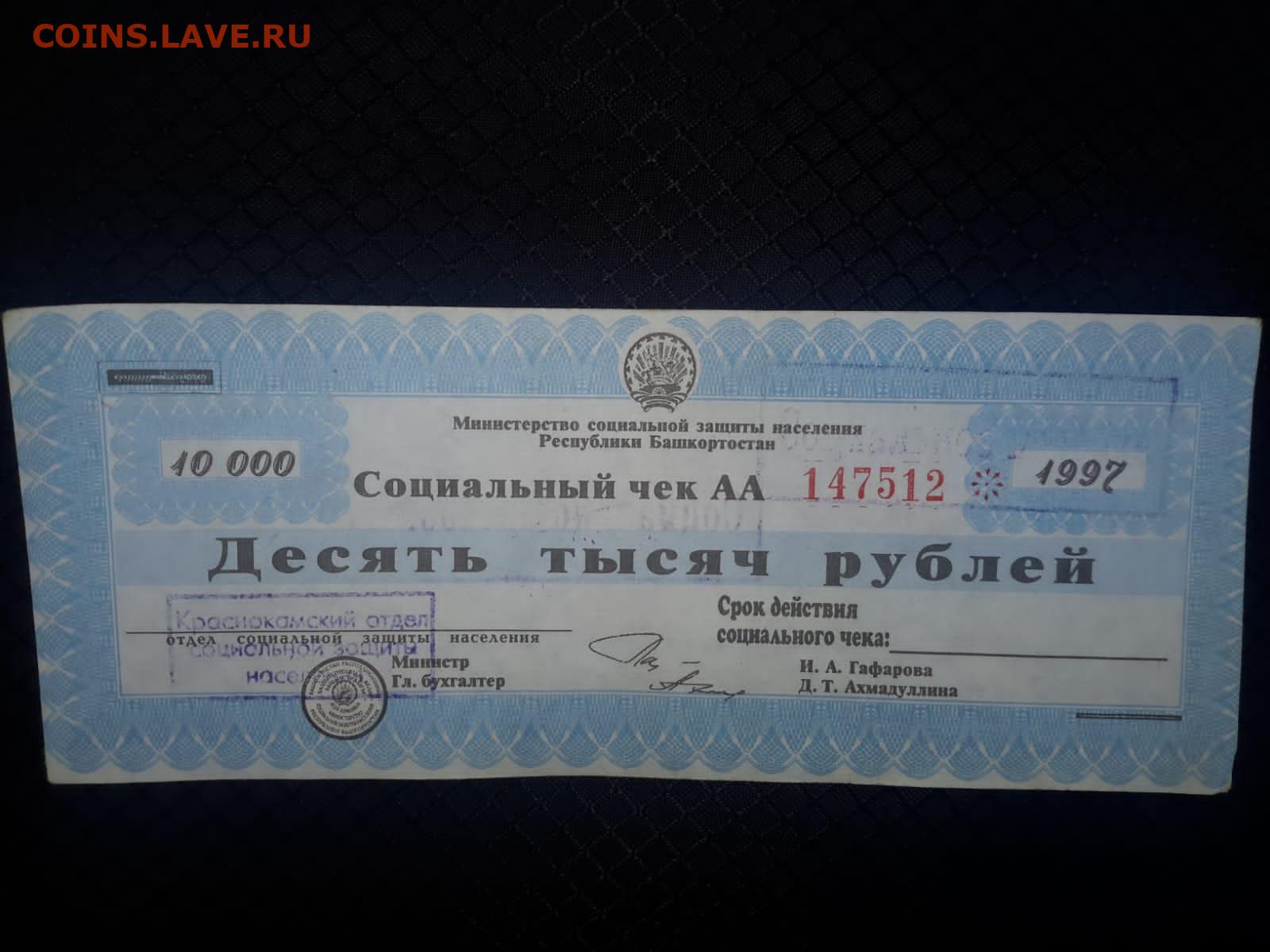 Социальный чек на сумму 10000 рублей,республика Башкортостан