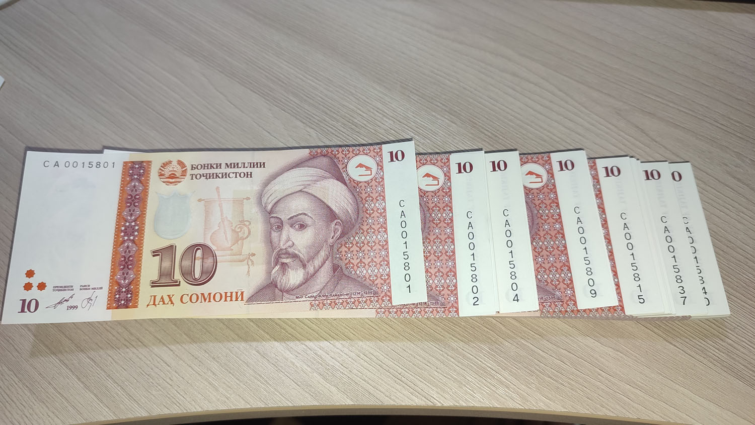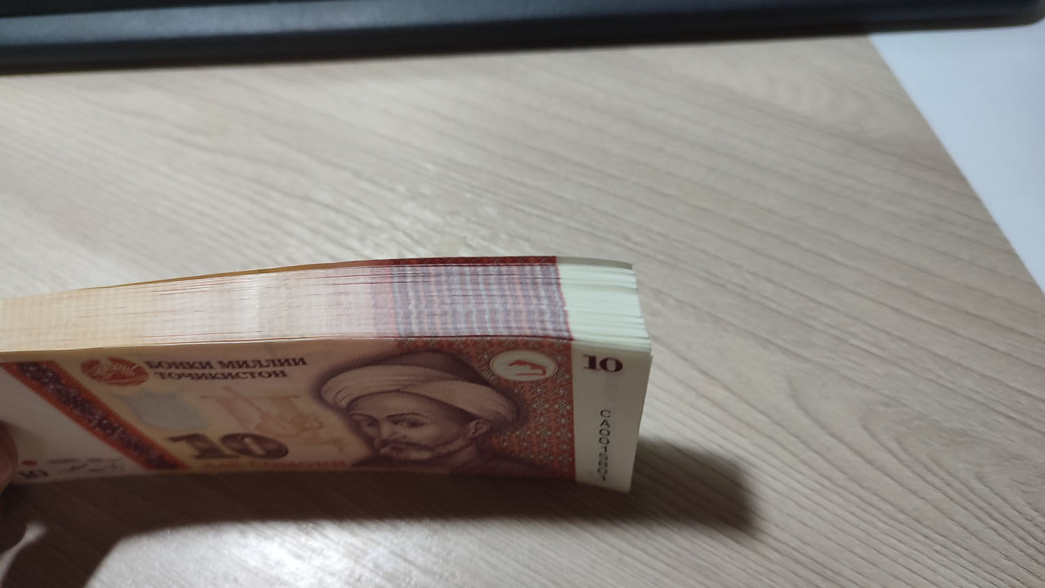 корешок 100 банкнот, первые или последние 2-3 боны имеют загиб от перетяжки. Номера по порядку.