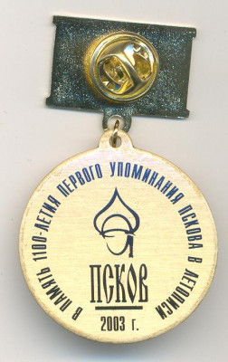 Описание лота: Знак (медаль) В честь 1100 летия первого упоминания Пскова в летописи.