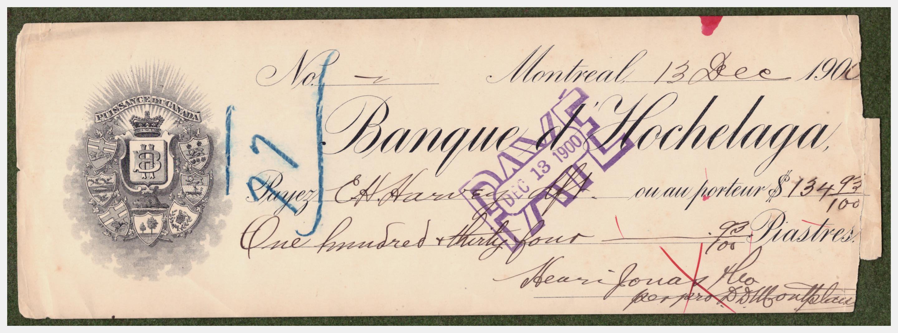 Банковский чек 1900 год. Соединенные штаты Америки.