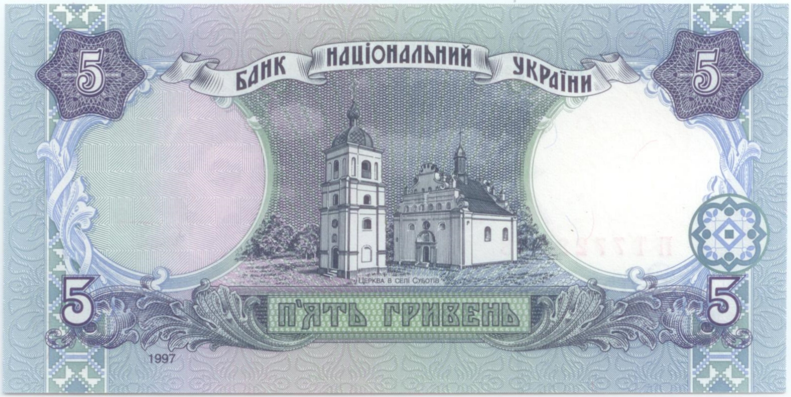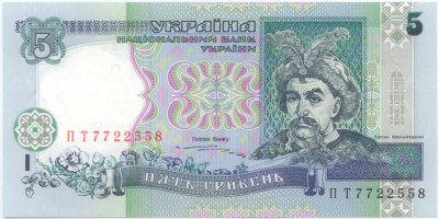 Описание лота: Билет Национального банка Украины номиналом 5 гривен образца 1997 года. Подпись: Ющенко. Без особых замечаний.