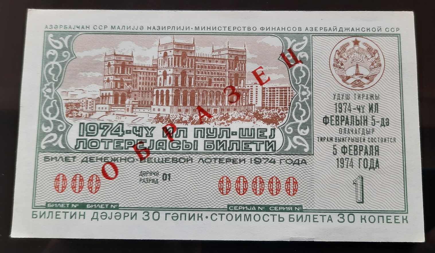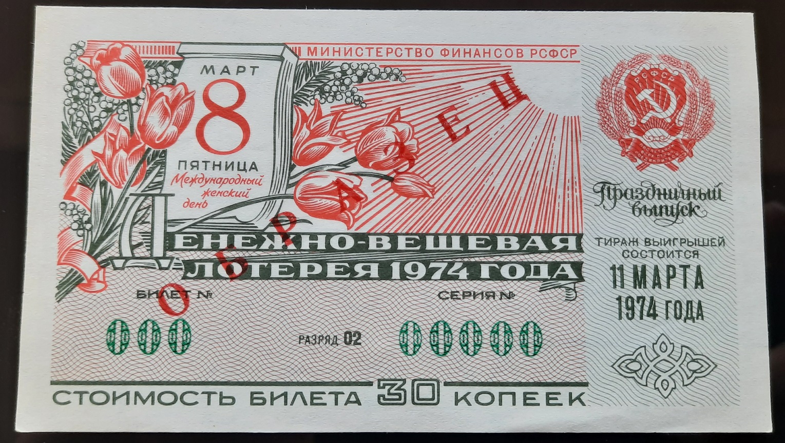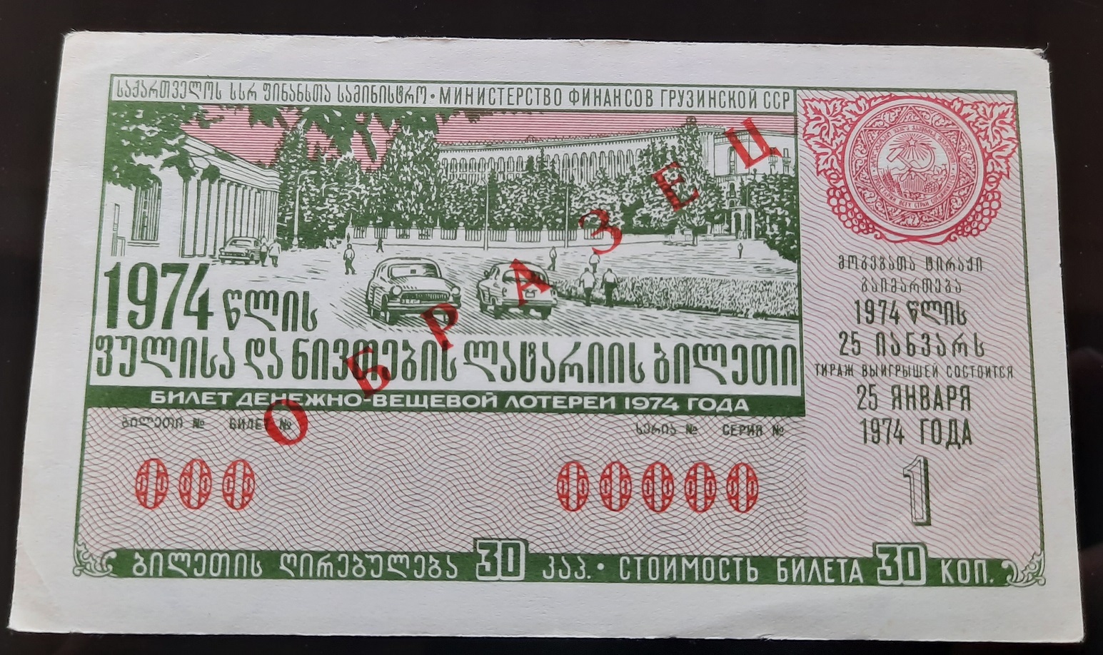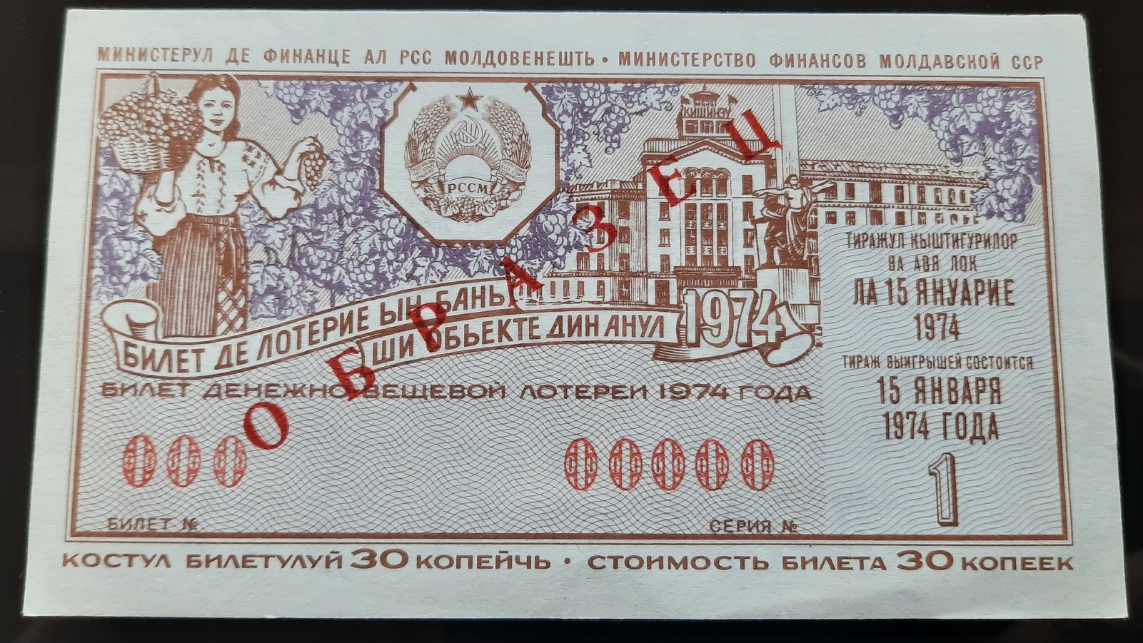 Лот состоит из 18 образцов денежно-вещевой лотереи 1974 года 1 и празднечных выпусков всех 15 союзных республик СССР