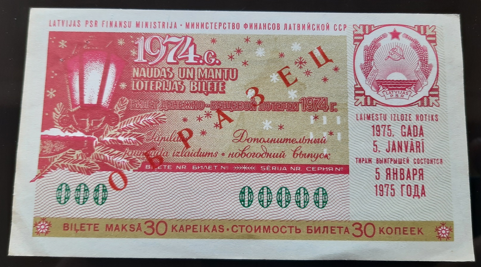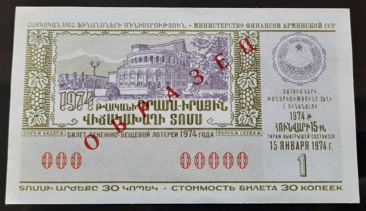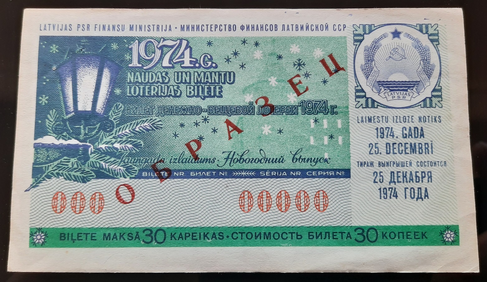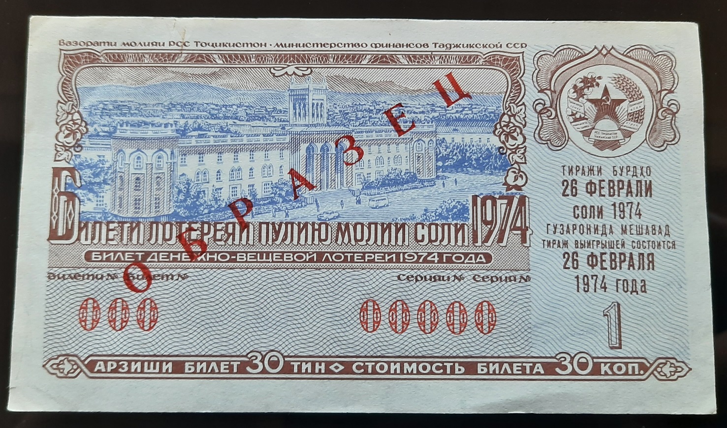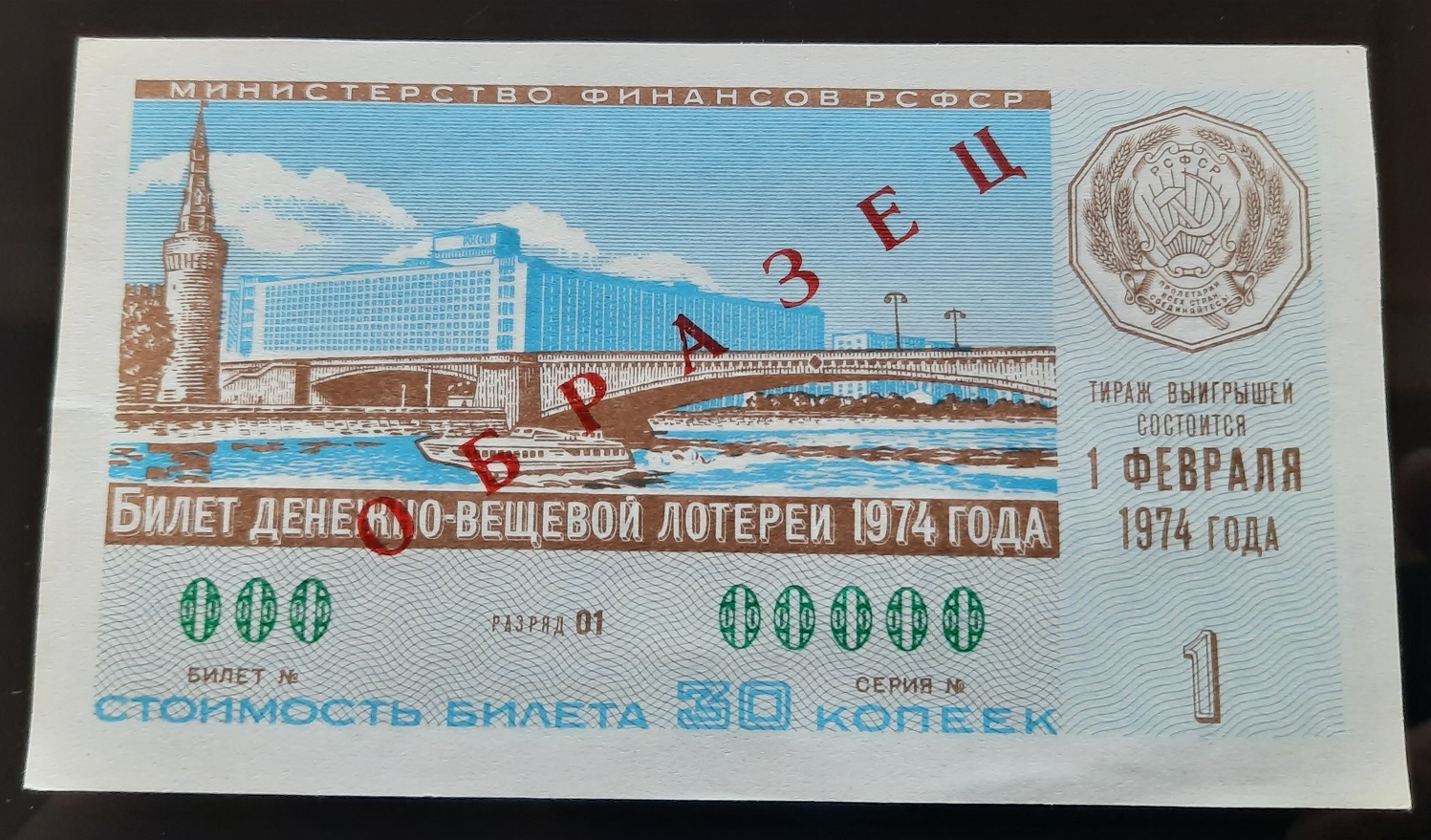 Лот состоит из 18 образцов денежно-вещевой лотереи 1974 года 1 и празднечных выпусков всех 15 союзных республик СССР
