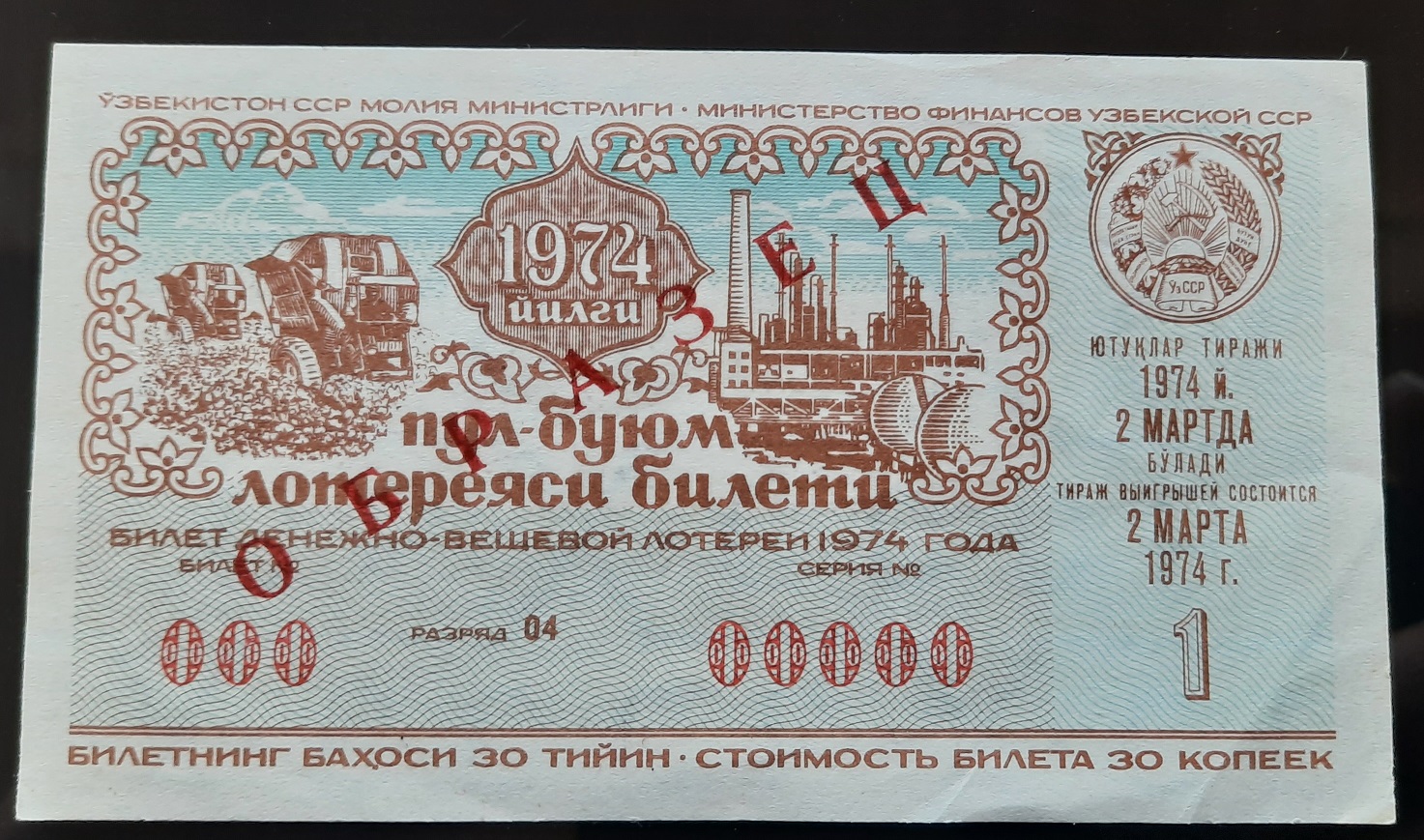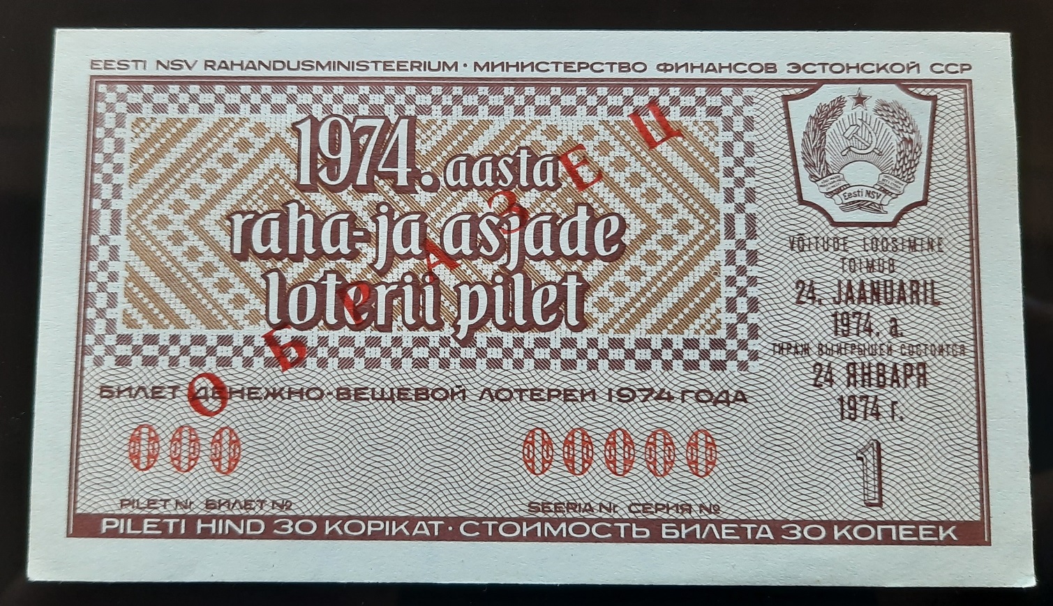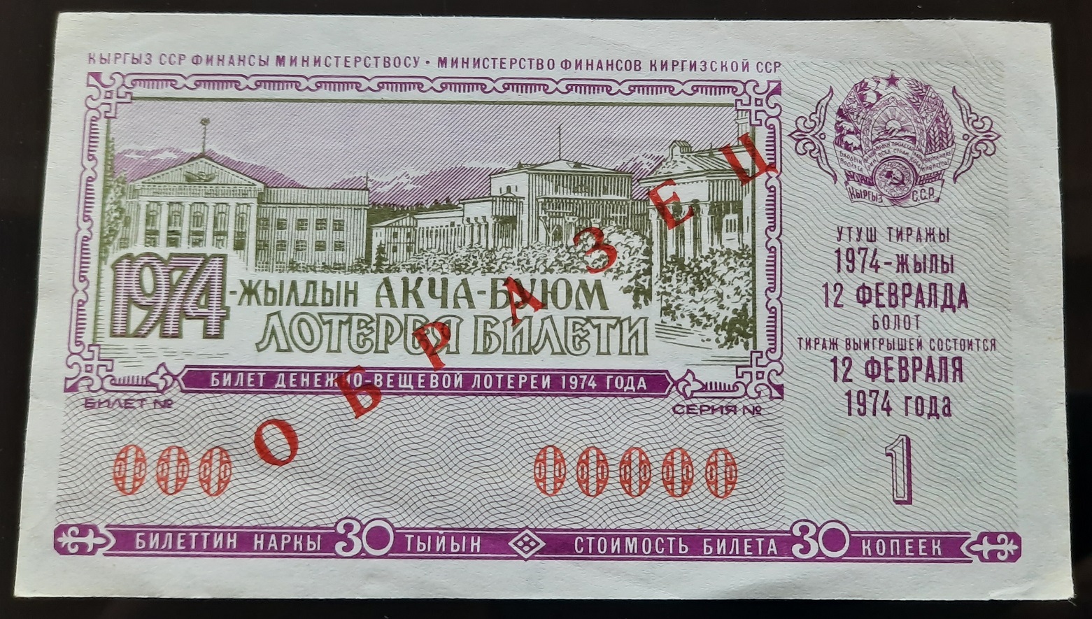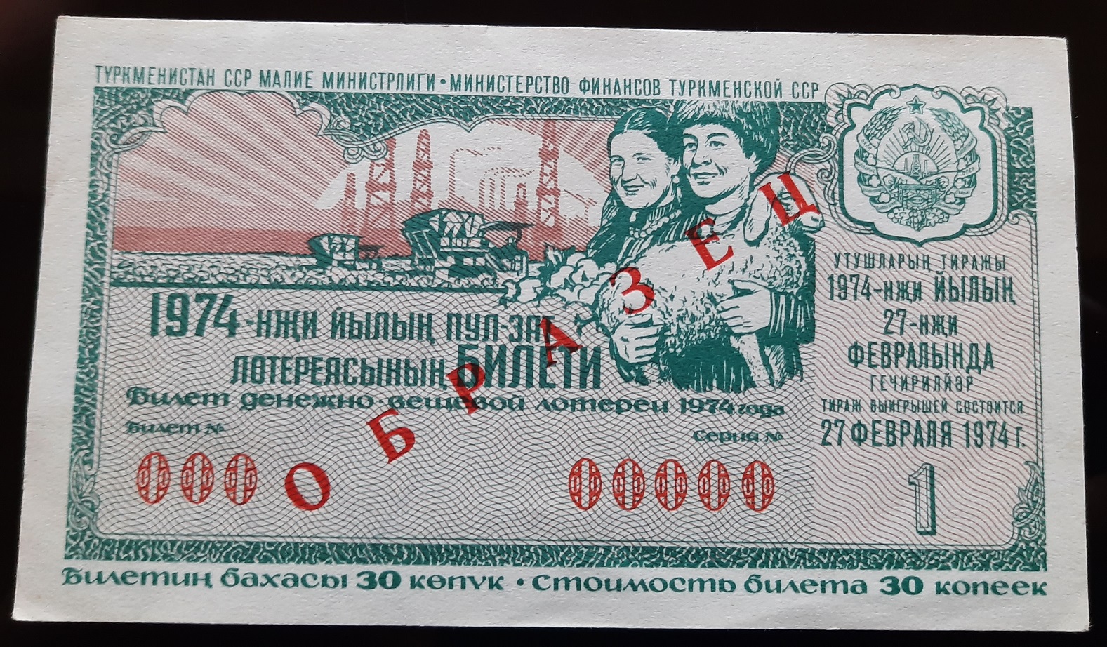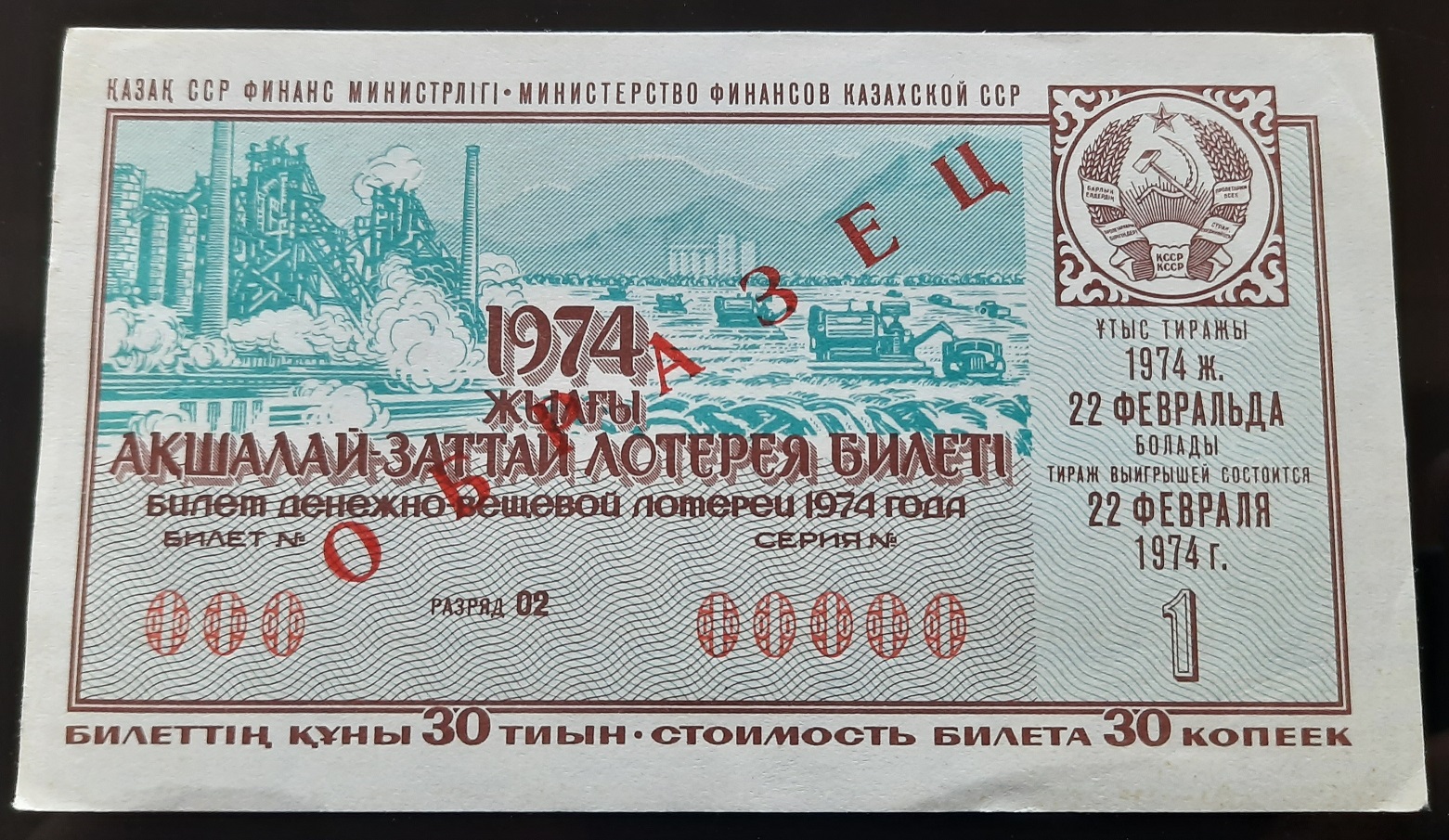 Лот из 18 образцов лотерей 1974 года 15 союзных республик