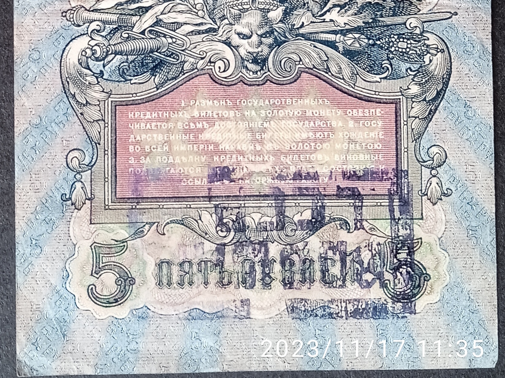 Здравствуйте, уважаемые форумчане. Попалась пара банкнот 5 рублей 1909 года с печатями. Подскажите, пожалуйста, что это за печати? За фото прошу меня извинить, сделал несколько фото дома и уехал, а теперь получается, что вышли тяжеловатыми, так что только так.