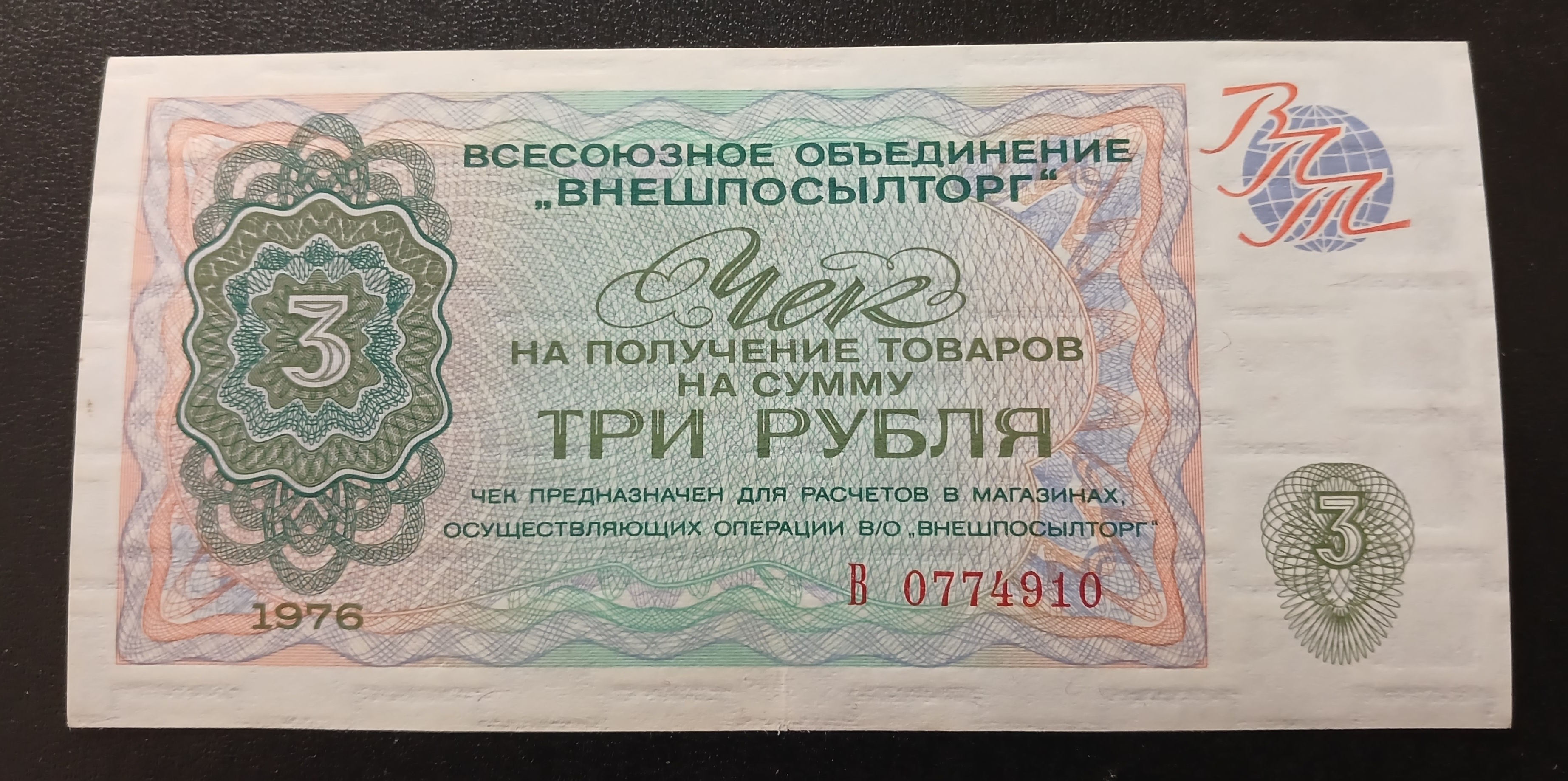 Здравствуйте. Попался такой чек. В каталогах серия не значится. Проходов, торгов не встречал. Информации по серии В 3 рубля 1976 не нашел.