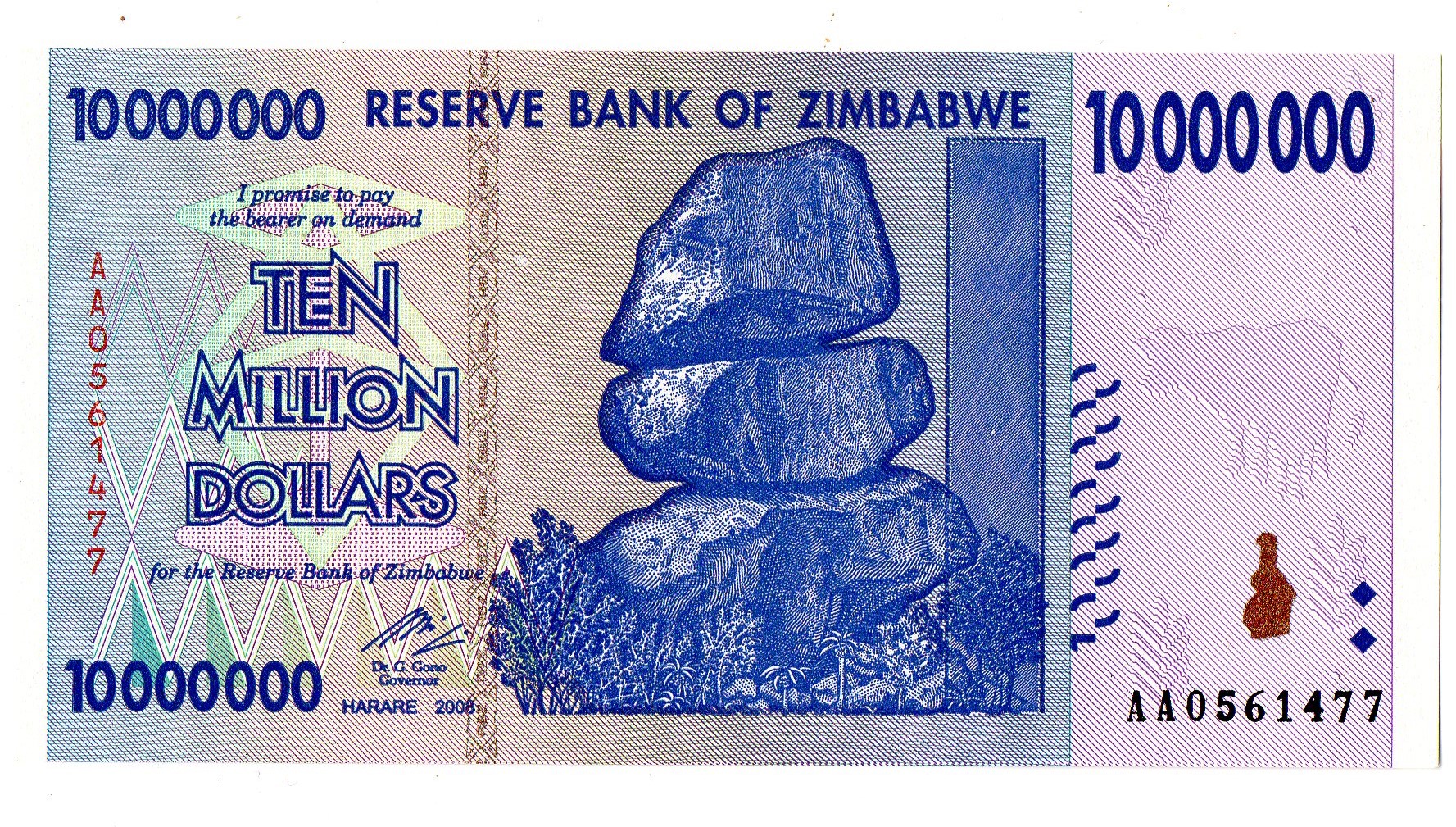 Зимбабве 10 миллионов долларов 2008 г.