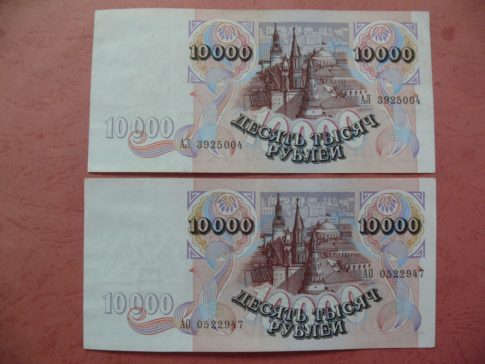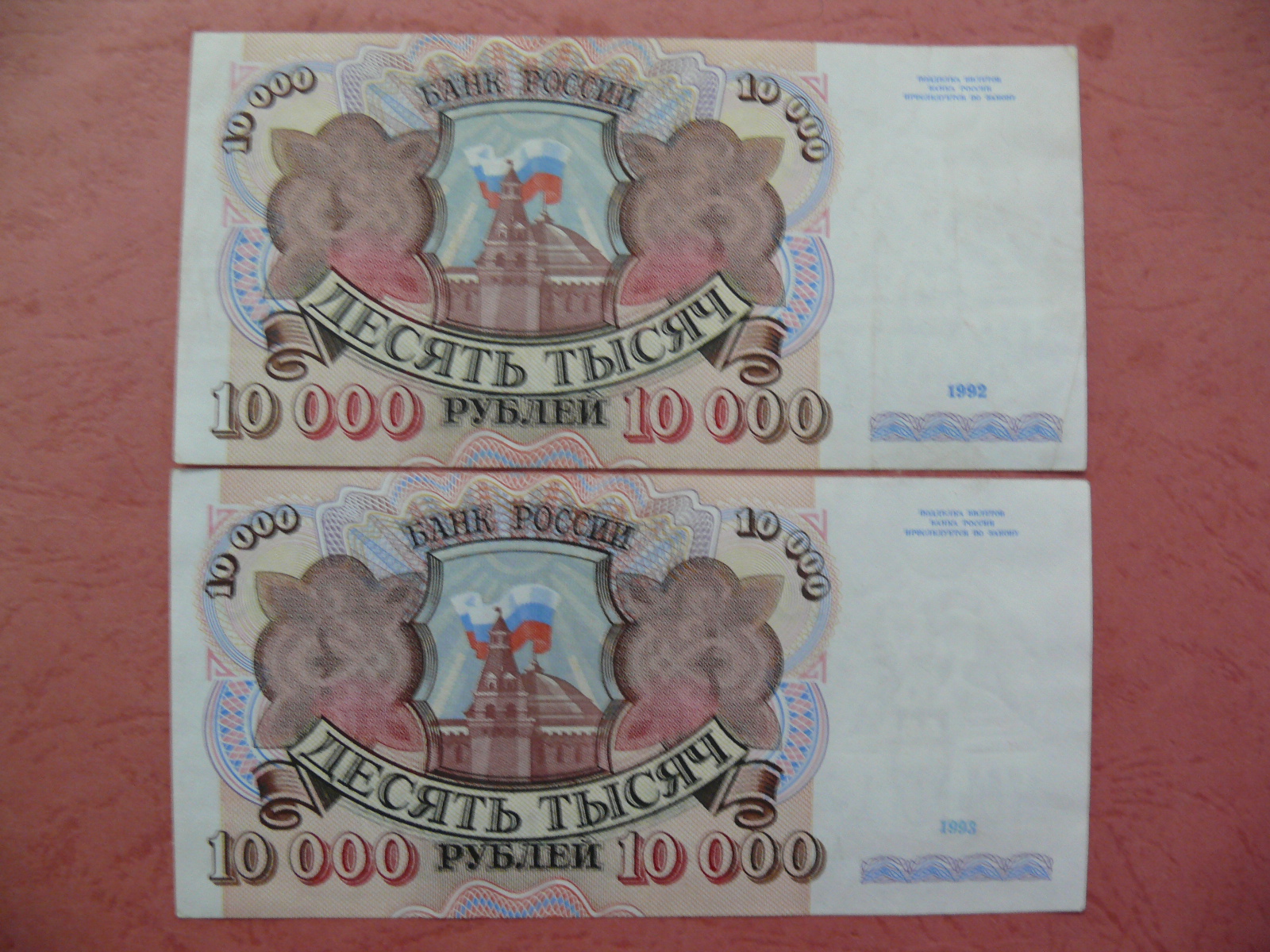 При переборе запасов попались две банкноты 10 000 рублей. Первая (1992 года) вопросов не вызвала. На второй же с удивлением увидел дату 1993 год.