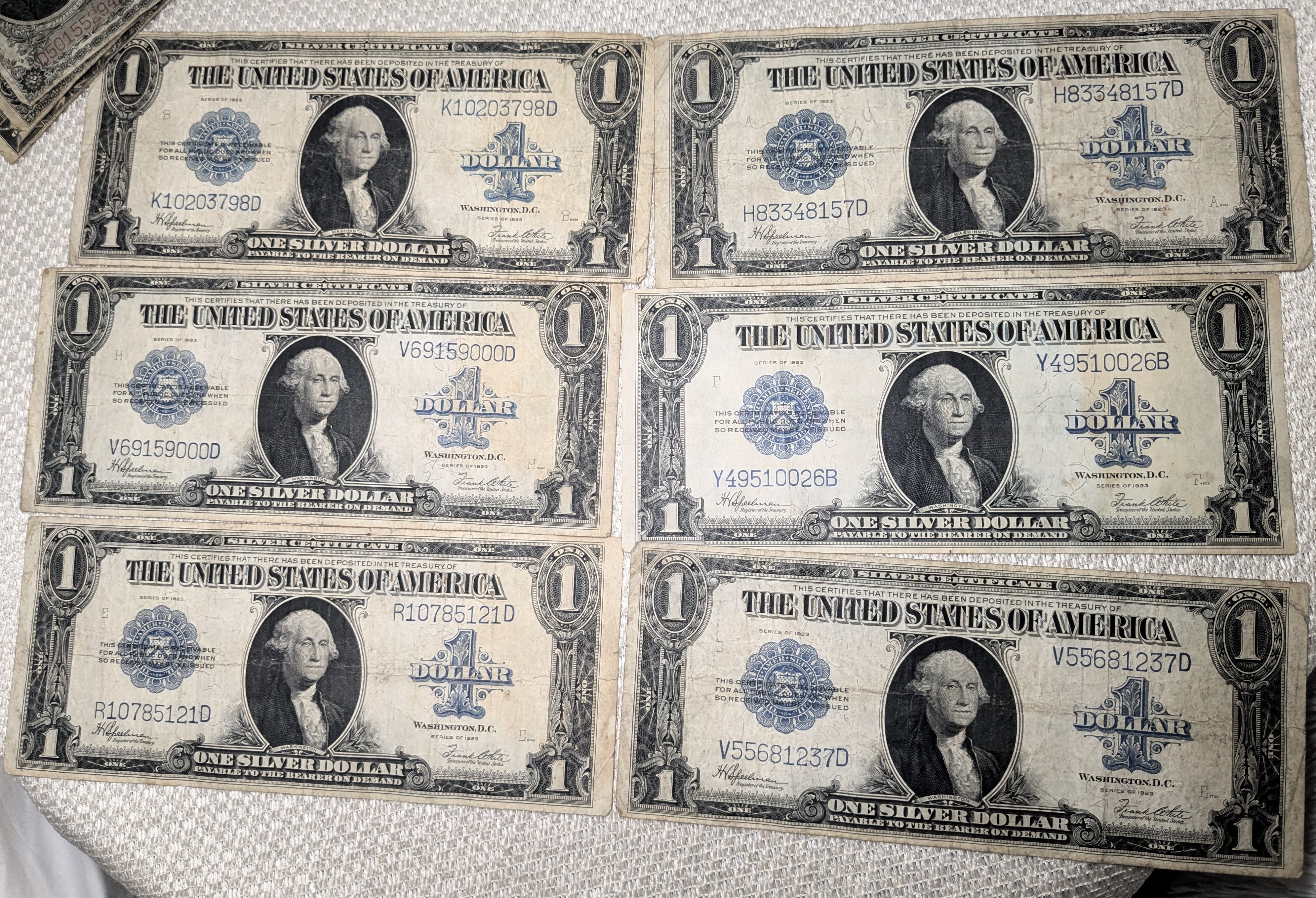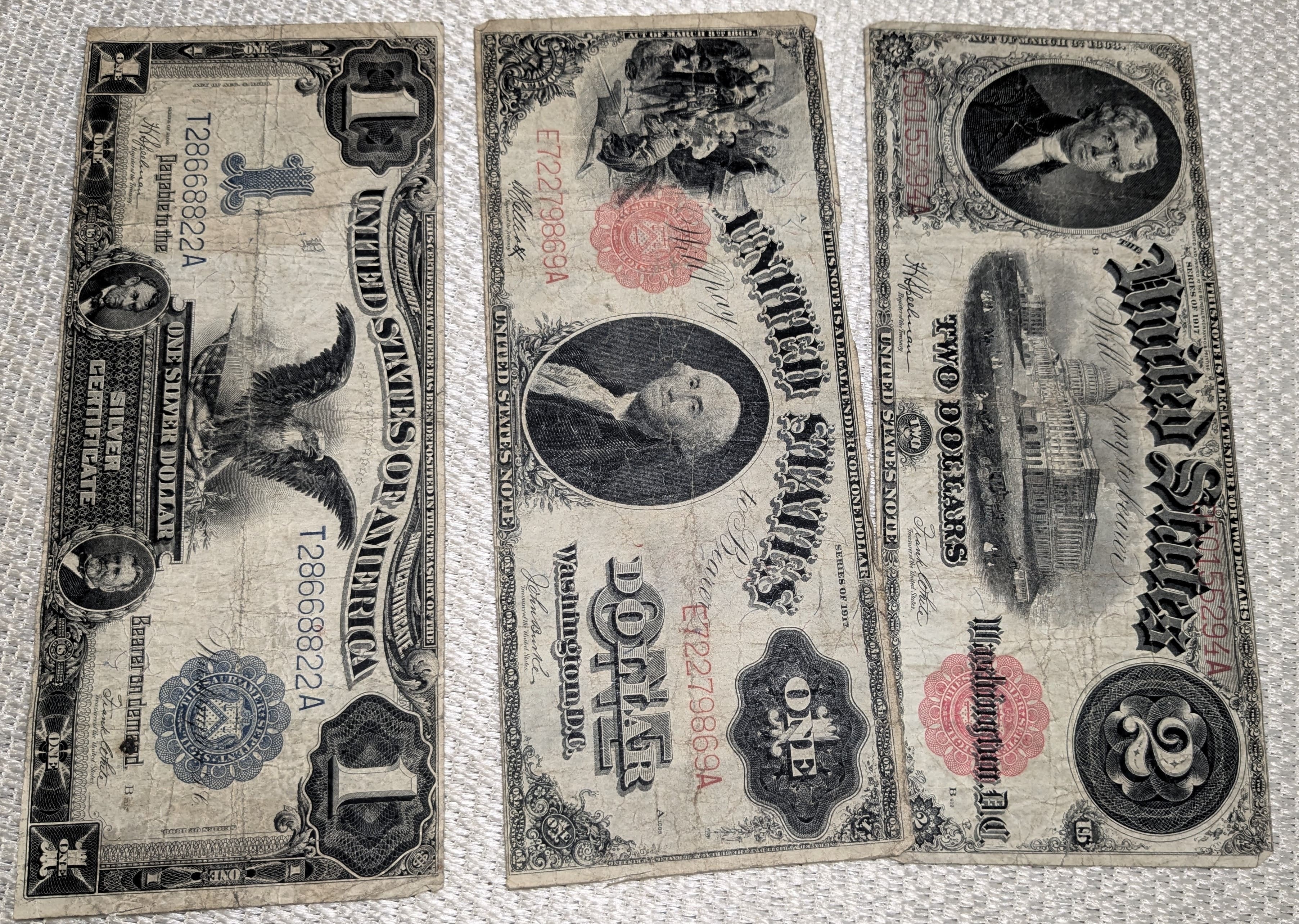 Серебряные сертифакаты-не редкость.Думаю 2-3 номинала уже непохой вариант за них.Следует сказать,что не очень в теме про цены.Но лучшую по состоянию-ВАЙ-495...Я бы себе оставил в коллекции.И доллары крупного размера тоже бы оставил бы себе.Но то я...