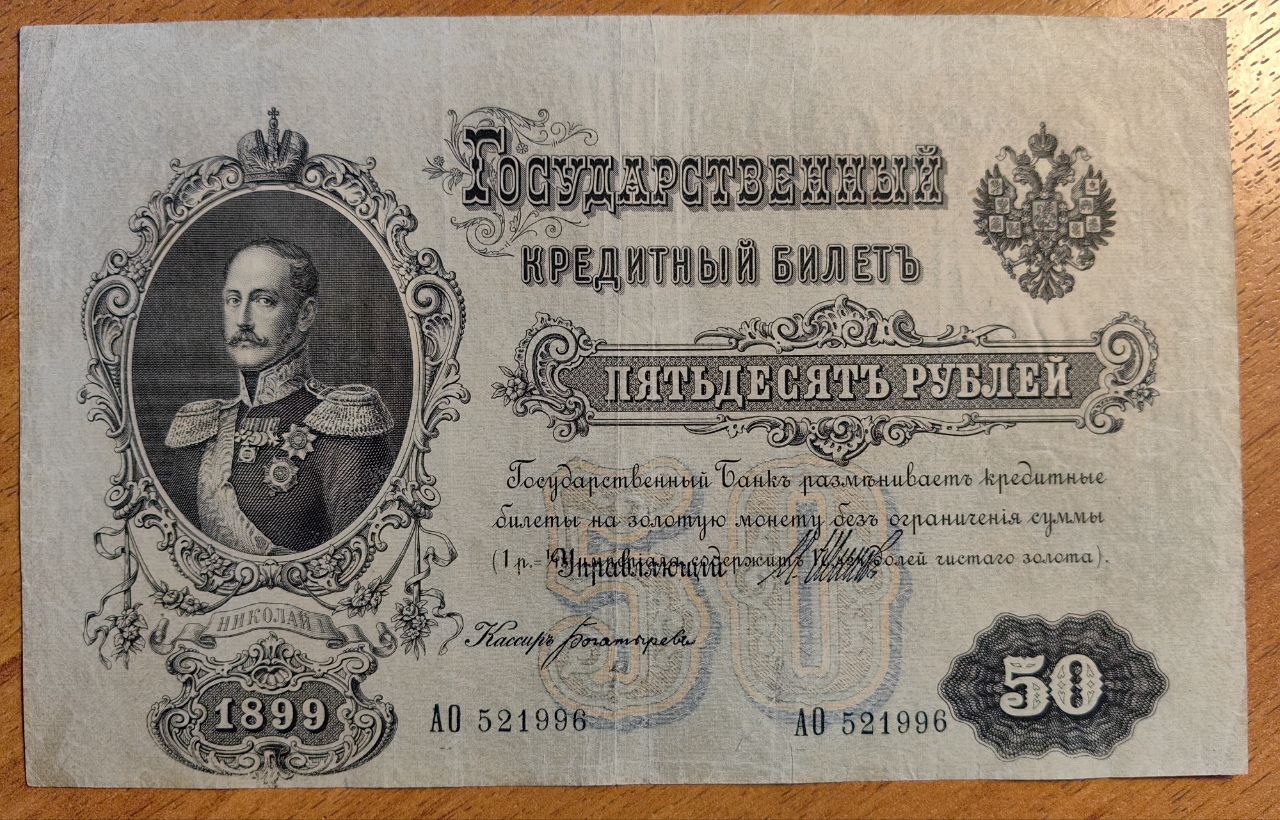 50 рублей 1899 сдвиг печати