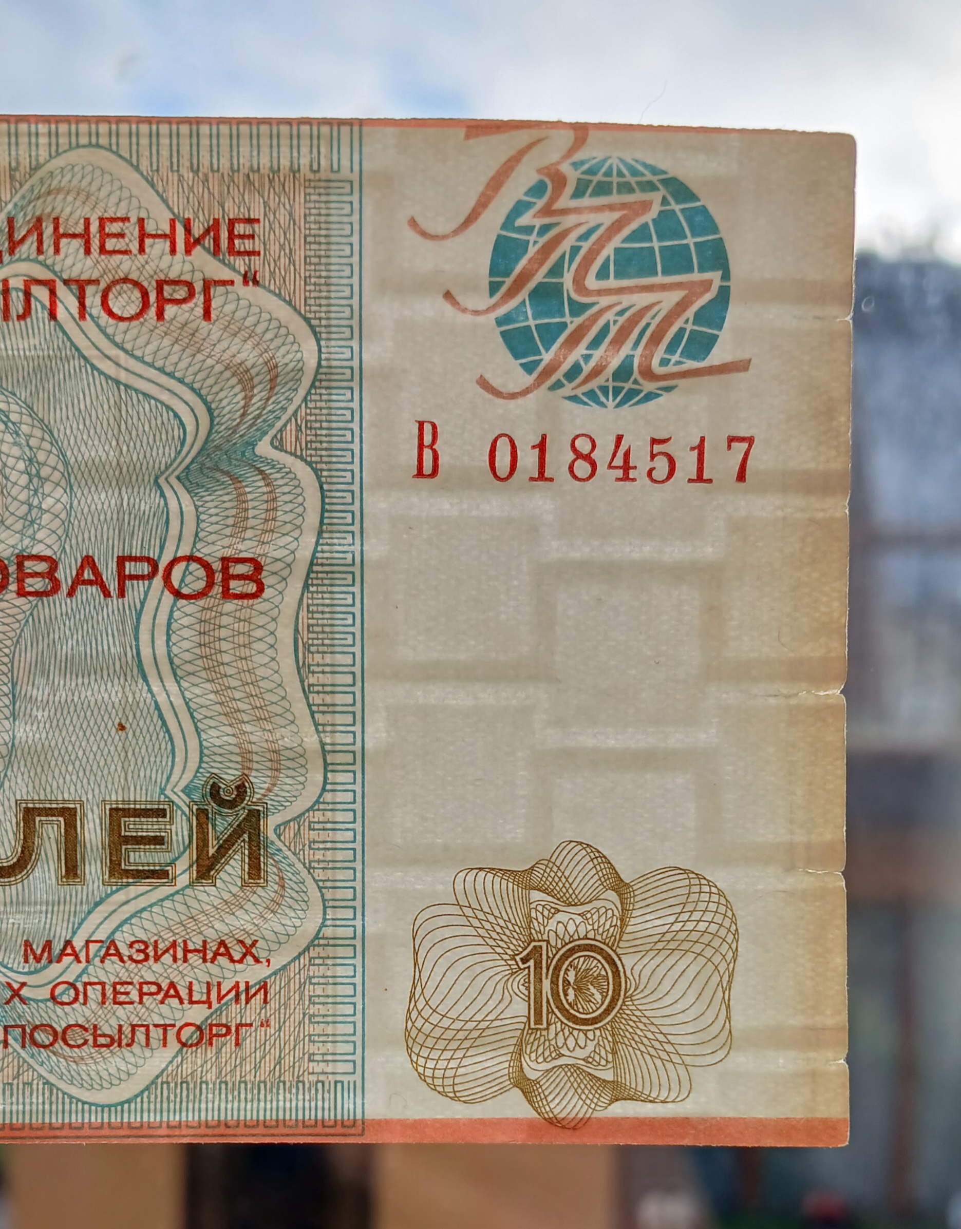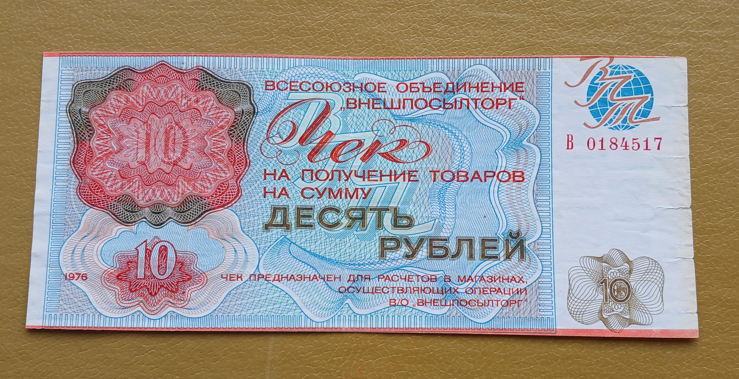 10 рублей 1976 Внешпосылторг для военной торговли (обрезанный) серия В.