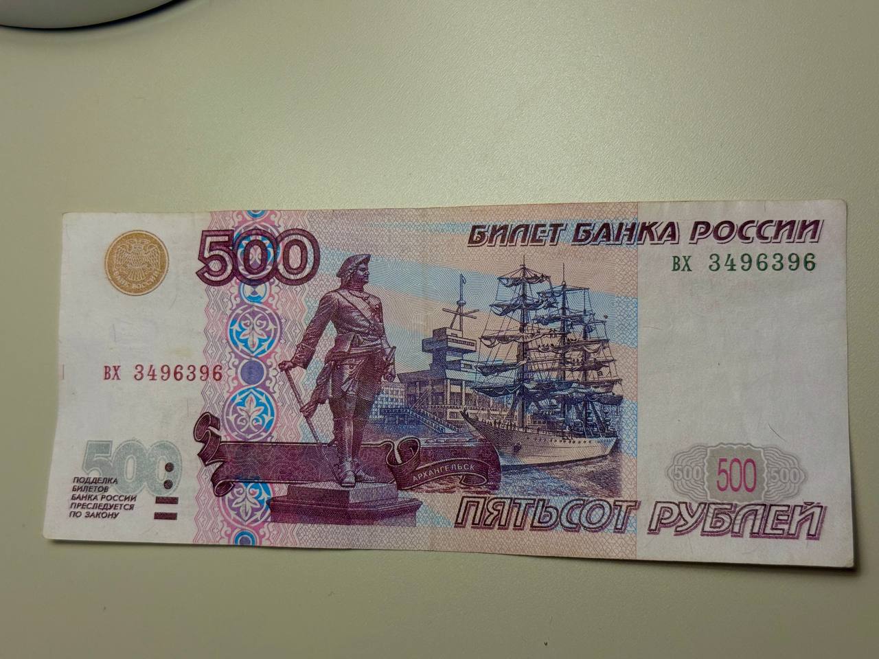 В банке дали сдачу, среди них была такая пятисотка. Очень удивился, видимо пенсионерская заначка (также дали тысячу 2004 г. две малые буквы в анцевом сост.). Имеет ли какую-то ценность в таком состоянии?