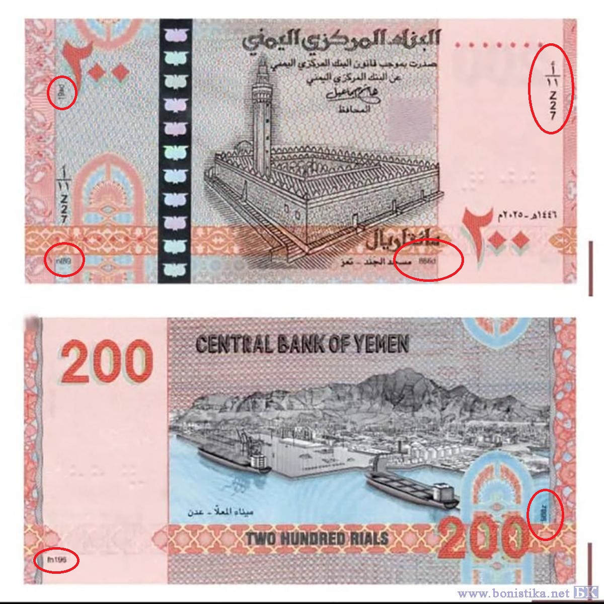 Сначала показалось, что вот этот коротенький номер i/11 Z27 и есть номер банкноты, подумалось, как так, а потом в рекламных материалах показали реальные банкноты, стало понятно, что номер - красные цифры, а черные - скорее некая серия. Зато большой простор для всяких контрольных сумм дают вот эти шесть (шесть? включая "серию") кодов на банкноте. Наверняка их комбинация должна работать на проверку подлинности