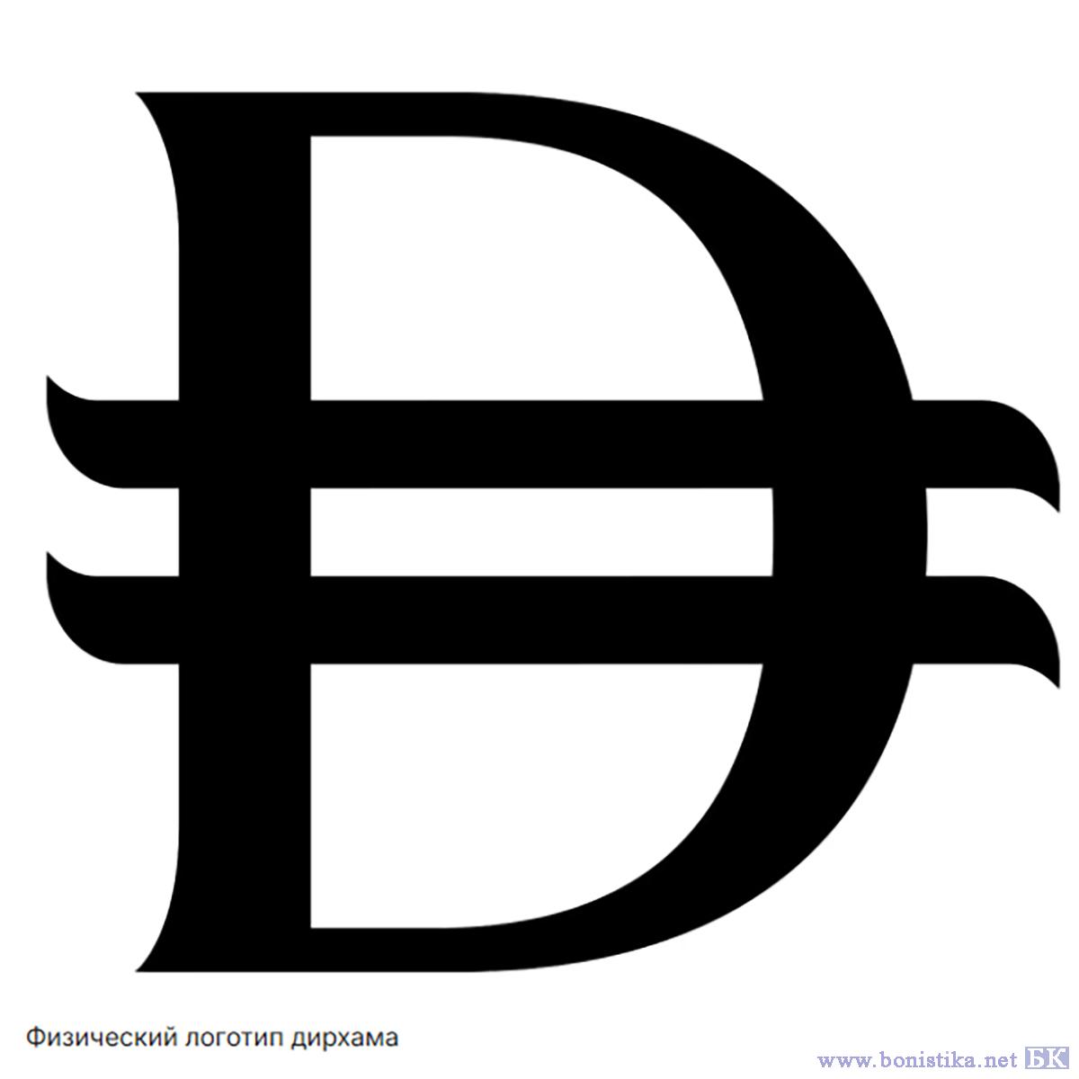 Физический символ представляет собой заглавную латинскую букву D, которая является первой в англоязычном названии дирхама. Также символ включает в себя две горизонтальные линии, олицетворяющие стабильность дирхама ОАЭ.