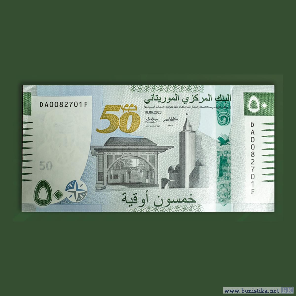 Центральный банк Мавритании (Banque centrale de Mauritanie; البنك المركزي الموريتاني) представил пятый тип памятной банкноты номиналом 50 угия образца 2023 года. Изображения опубликованы на официальных страницах банка в социальных сетях.