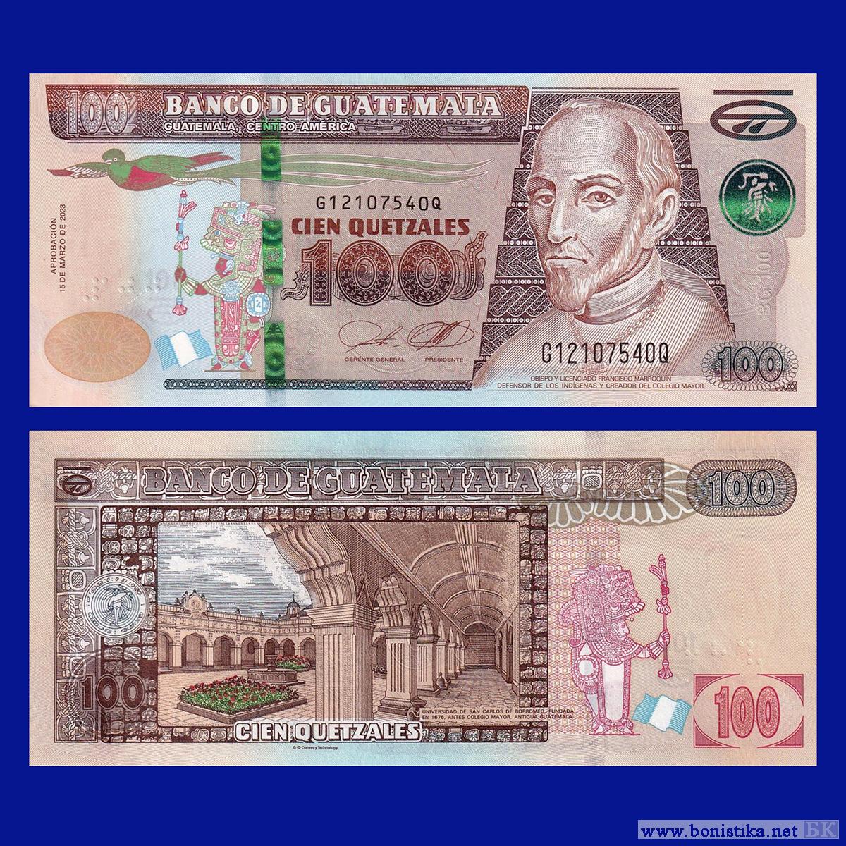 Банк Гватемалы (Banco de Guatemala) выпустил в наличное обращение тираж купюр номиналом 100 кетцалей образца 2010-2023 гг.