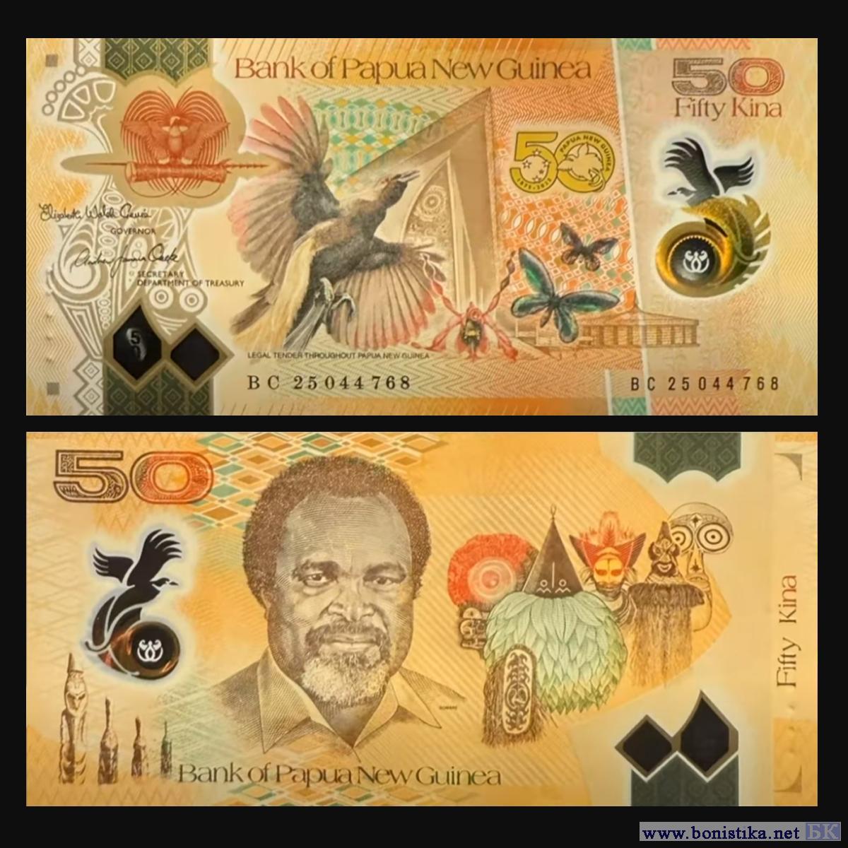 Банк Папуа — Новой Гвинеи (Bank of Papua New Guinea) выпустил в обращение полимерные банкноты номиналом 50 кина 2025 года, посвященные 50-й годовщине провозглашения независимости страны и создания национальной валюты.