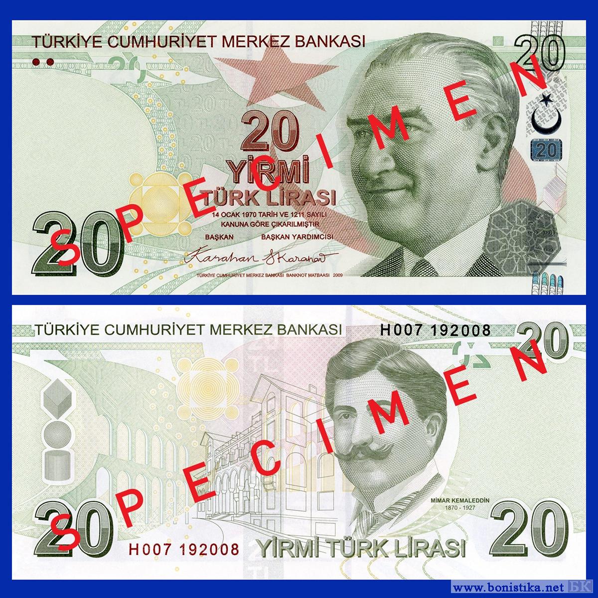 Все находящиеся в обращении купюры номиналом 20 турецких лир сохраняют свою платежную силу и могут использоваться для всех видов расчетов наравне с банкнотами нового выпуска, отмечается в сообщении Центрального банка Турецкой Республики.