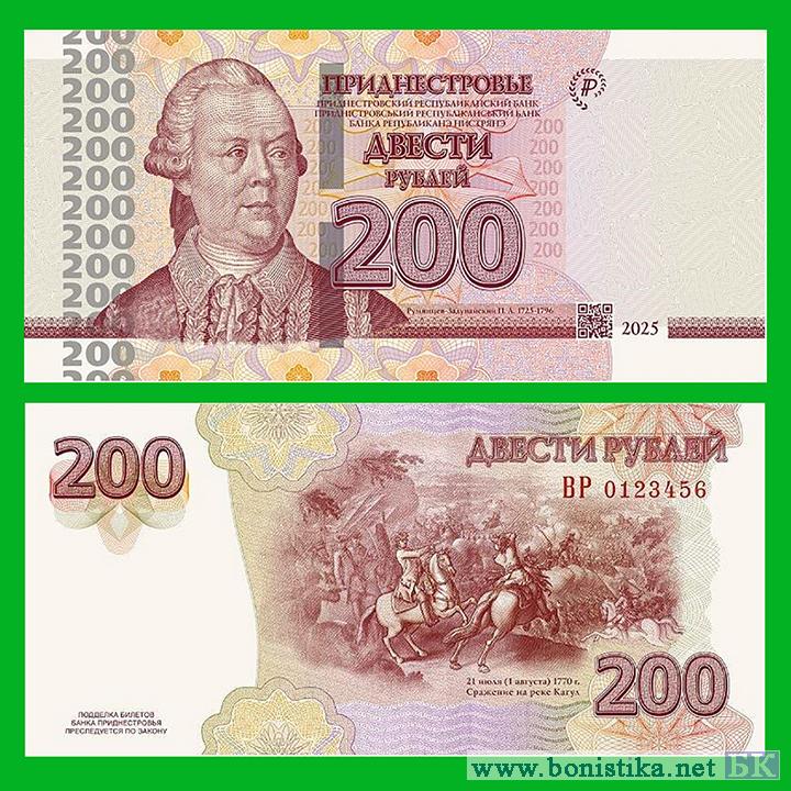 Приднестровский республиканский банк, он же Банк Приднестровья (Банка Републиканэ Нистрянэ; Придністровський Республіканський Банк), сообщил о выпуске банкнот номиналом 200 приднестровских рублей образца 2025 года.