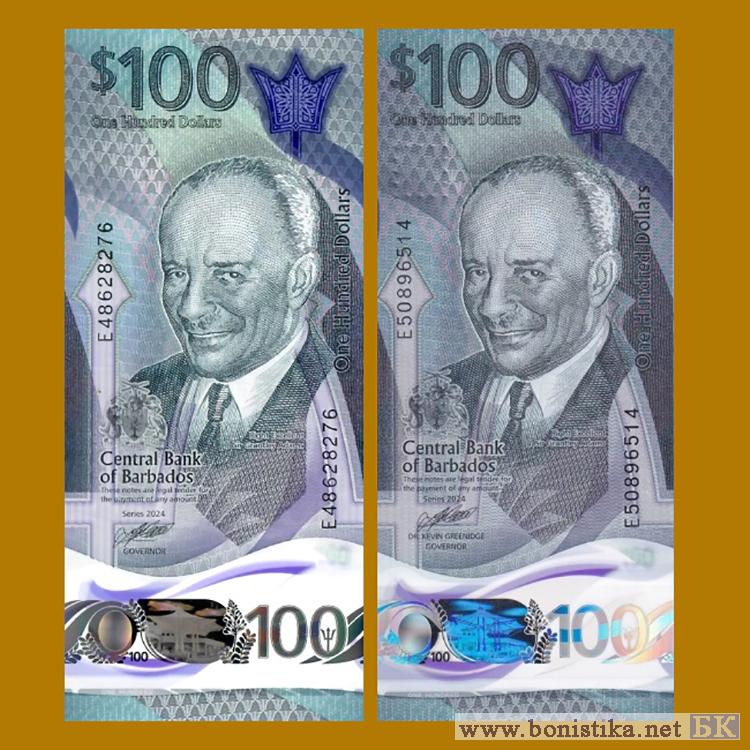 Центральный банк Барбадоса (Central Bank of Barbados, CBB) модернизировал полимерные банкноты серии 2022 год выпуска 2024 года. С лицевой стороны денежного знака удалено имя губернатора банка Кевина Гриниджа (Kevin Greenidge).
