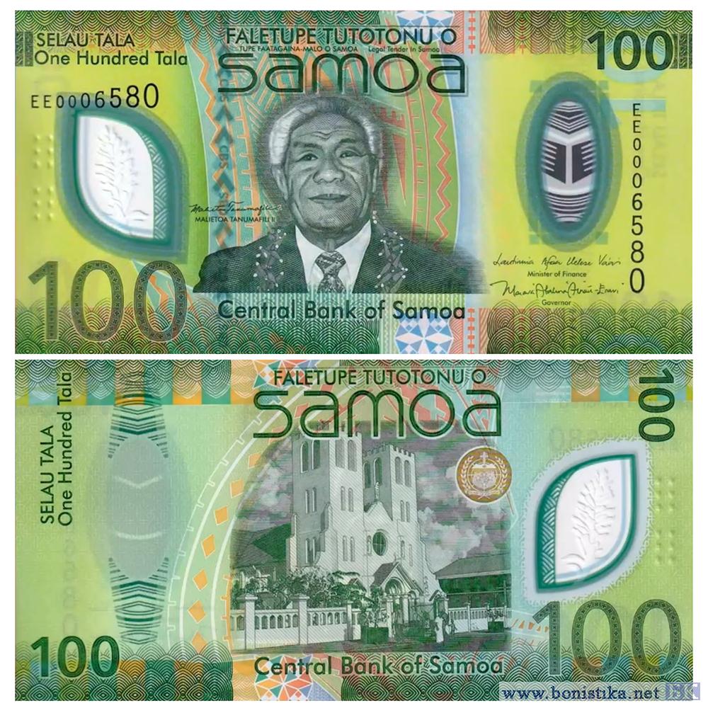 Центральный банк Самоа (Central Bank of Samoa; Faletupe Tutotonu o Samoa) сообщил, что начал эмиссию банкнот номиналом 50 и 100 тала, отпечатанных на полимерной основе. Эти две купюры завершают серию пластиковых обиходных денежных знаков, выпуск которой начат в 2023 году.