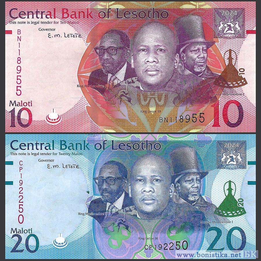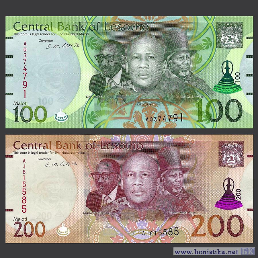 Центральный банк Лесото (Central Bank of Lesotho; Banka e Kholo ea Lesotho) выпустил в обращение тиражи модернизированных банкнот номиналом 10, 20, 100 и 200 малоти.