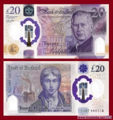 Дизайн денежных знаков номиналом 20 фунтов новой эмиссии, их физические параметры и средства защиты от подделывания остались без изменений.
