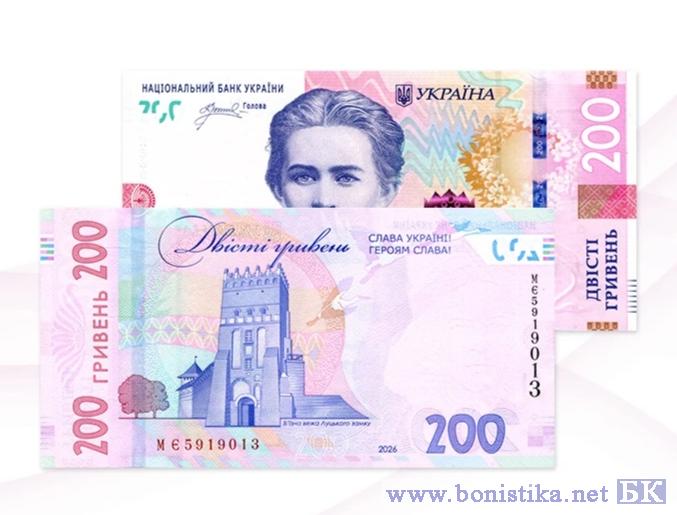 Национальный банк Украины (Національний банк України, НБУ) в рамках планового выпуска с 25 февраля 2026 вводит в наличное обращение модифицированные банкноты номиналом 200 гривен.