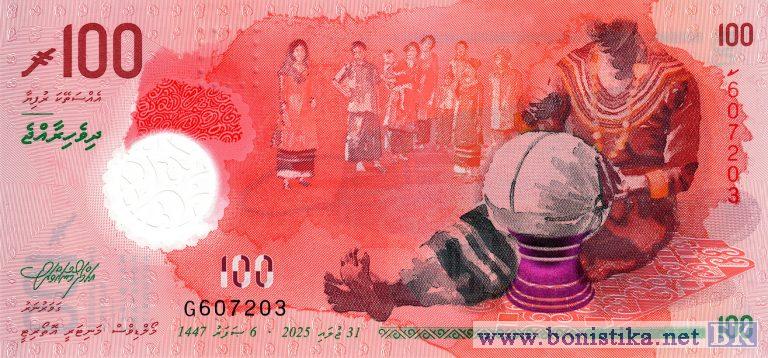 Обе купюры датированы 2025 годом. На банкнотах отпечатано факсимиле подписи управляющего ММА Ахмеда Мунавара (Ahmed Munawar).
