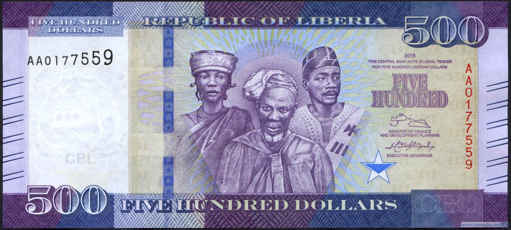 Либерия, 2016, 500 долларов