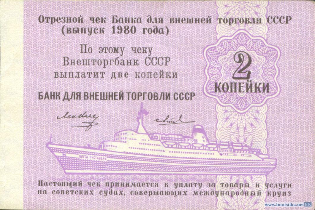 СССР, Заменители валюты, 1980, Круизный чек, 2 копейки