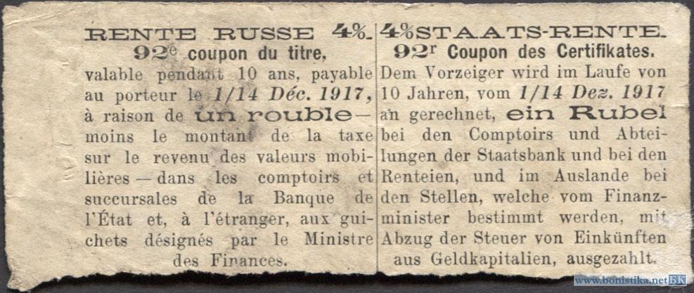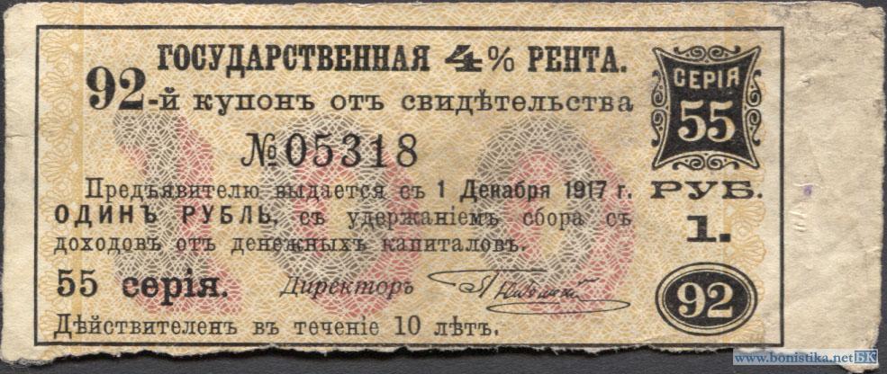 Замовити: Государственная 4% рента, купон 1 рубль, срочный