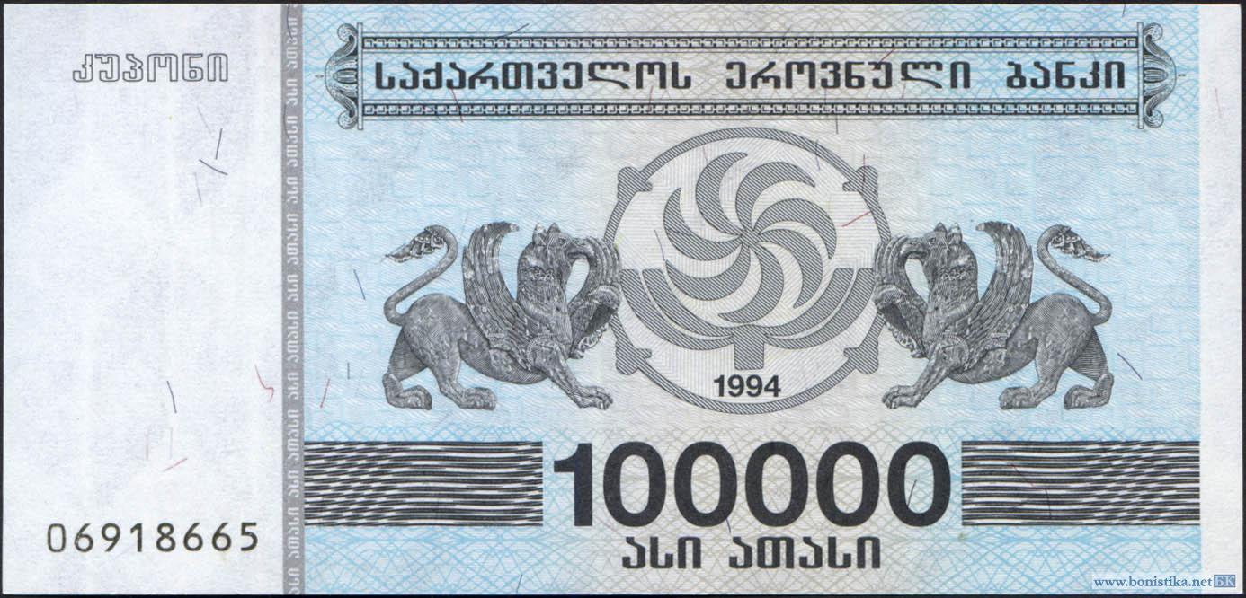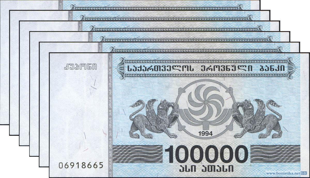 Грузия, 1994, 100000 купонов (без защитной нити), 6 штук