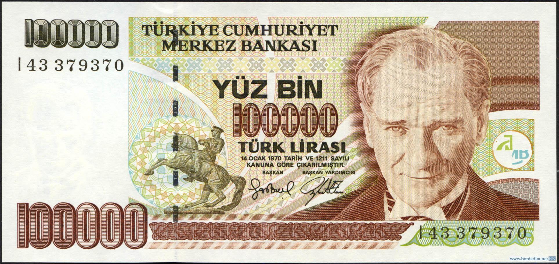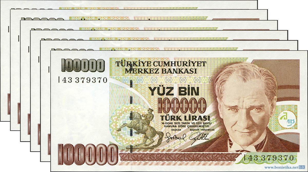 Турция, 1970, 100000 лир 1984-2002, 6 штук