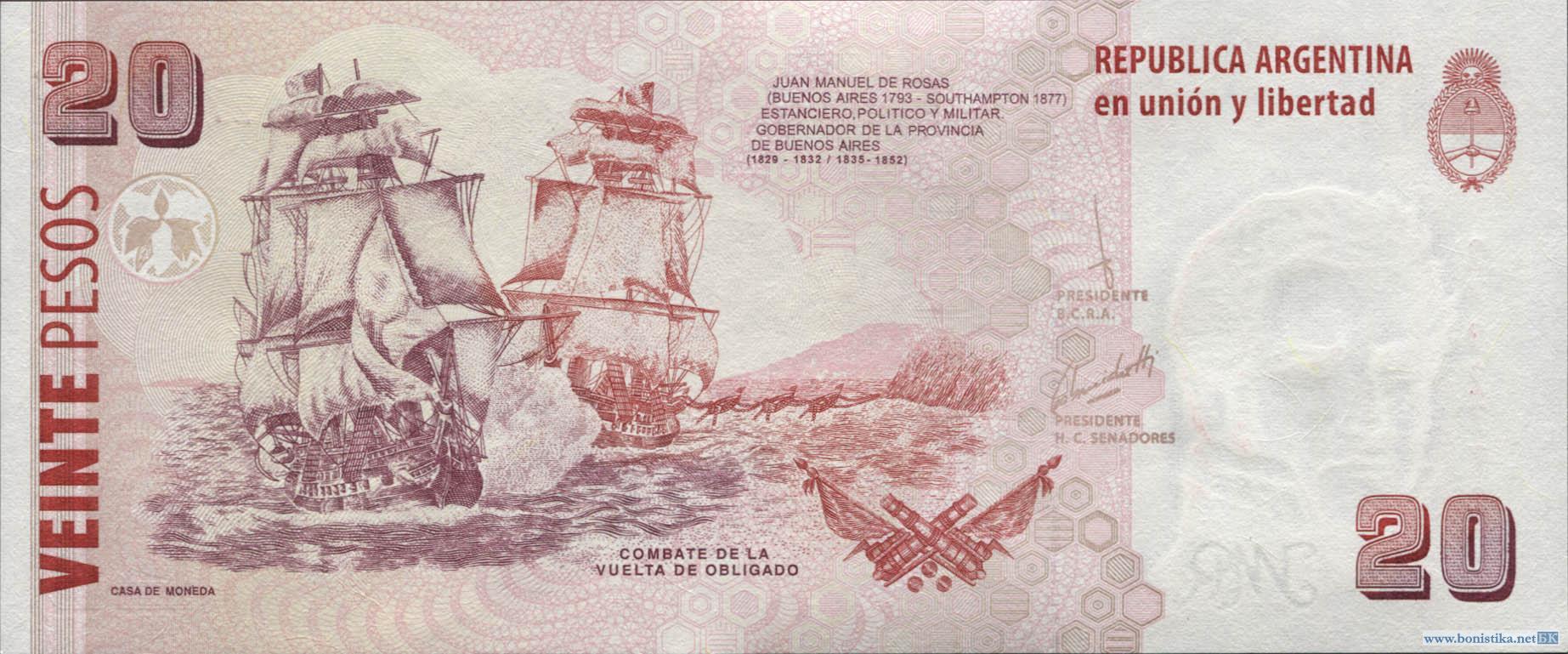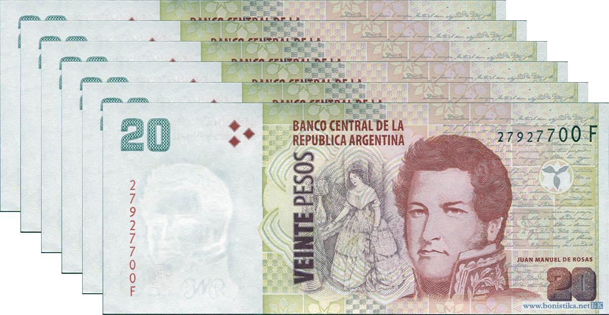 Аргентина, 2003, 20 песо, серия F (2013), 6 штук