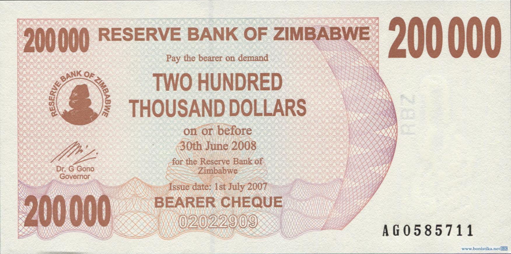 Зимбабве, 2008, 200000 долларов