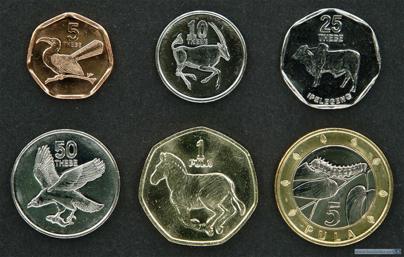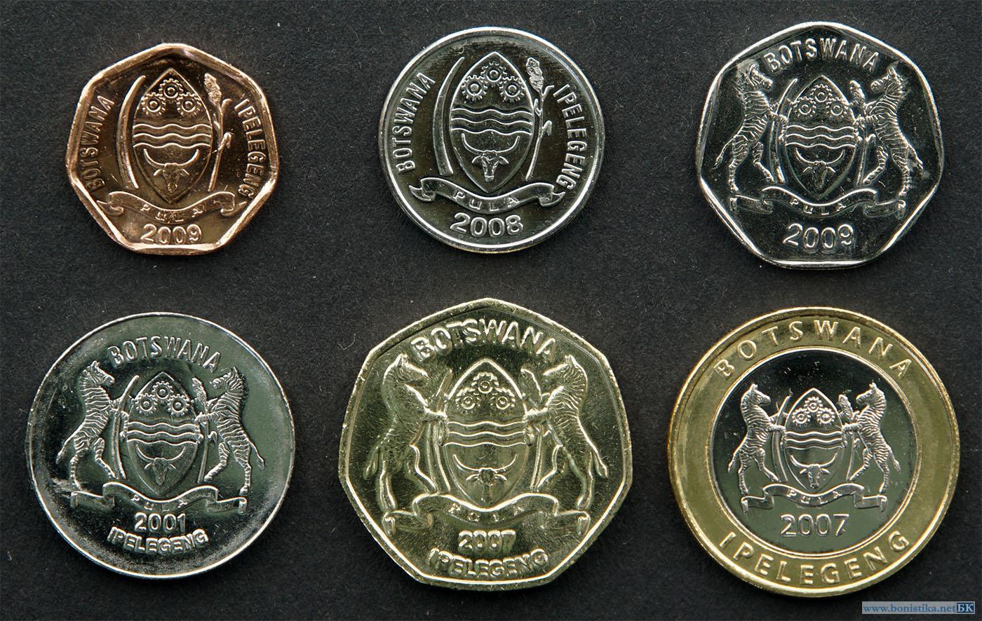 Ботсвана, 2001, Набор 5, 10, 25, 50 тхебе и 1, 5 пул 2001-2009 гг