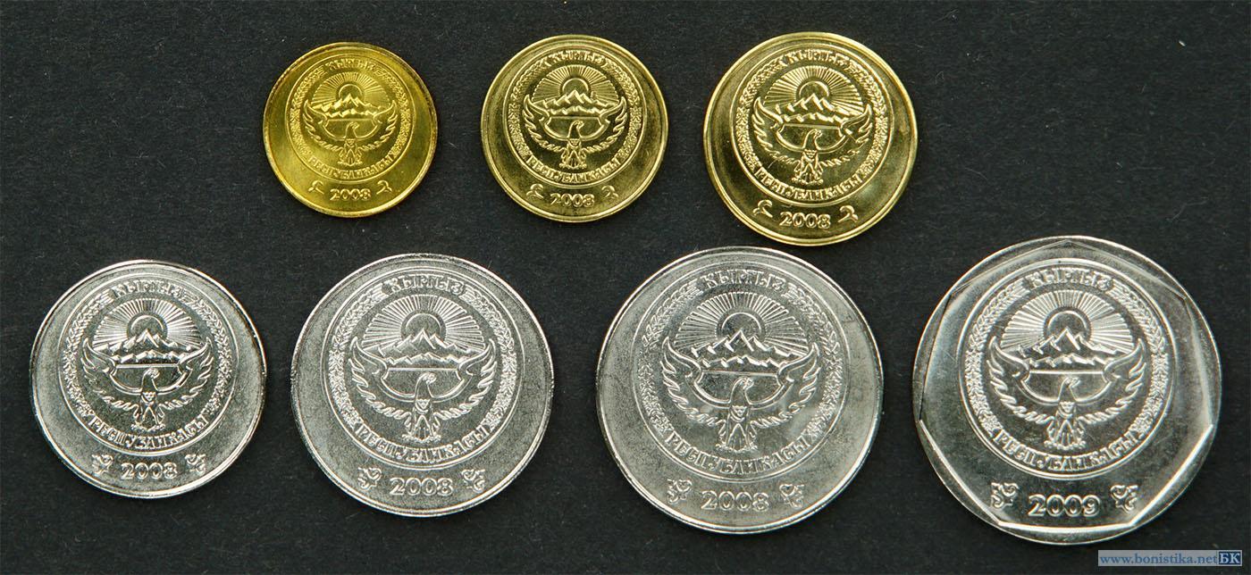 Кыргызстан, 2008, Набор 1, 5, 10 тыин, 1, 3, 5, 10 сомов 2008-2009 гг.