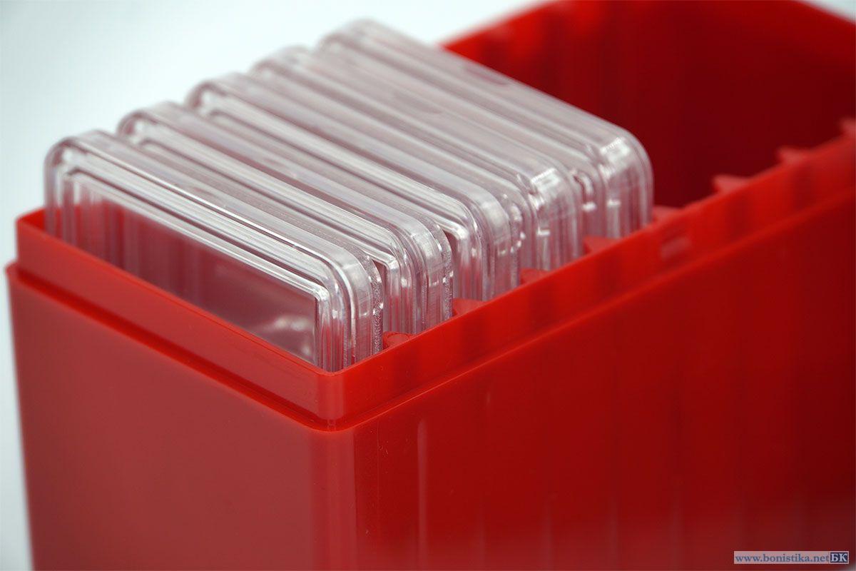 | Це практичне та надійне рішення для колекціонерів та нумізматів. Призначена для акуратного зберігання та транспортування до 10 слабів з колекційними монетами, забезпечує порядок, захист та зручний доступ до колекції. Бокс виготовлений з міцного матеріалу, що добре тримає форму і захищає вміст від механічних пошкоджень, пилу та зовнішнього впливу. Укомплектований м'якими вкладками, які допомагають регулювати розмір монети у капсулі. Сама капсула в боксі підходить під монету 30 мм, але вкладки дозволяють зберігати монети діаметром від 19 мм до 30 мм. Капсули щільно фіксують монети, не допускаючи їх усунення, а прозорий матеріал дозволяє розглядати монети з обох боків без необхідності відкривати капсулу. Надійна конструкція, акуратний зовнішній вигляд, міцний корпус та яскравий червоний колір робить бокс помітним і стильним. Розмір боксу: - довжина: 131 мм - ширина: 91 мм - глибина: 70 мм - матеріал: полімер (PS), не жовтіє. - колір: червоний Вага: 165 гр Слаби до комплектації не входять |