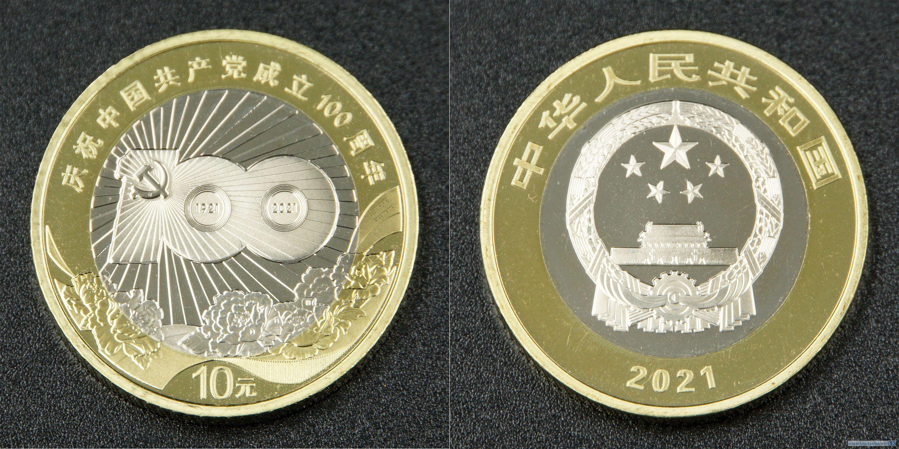 Китай, 2021, 10 юаней '100 лет коммунистической партии'