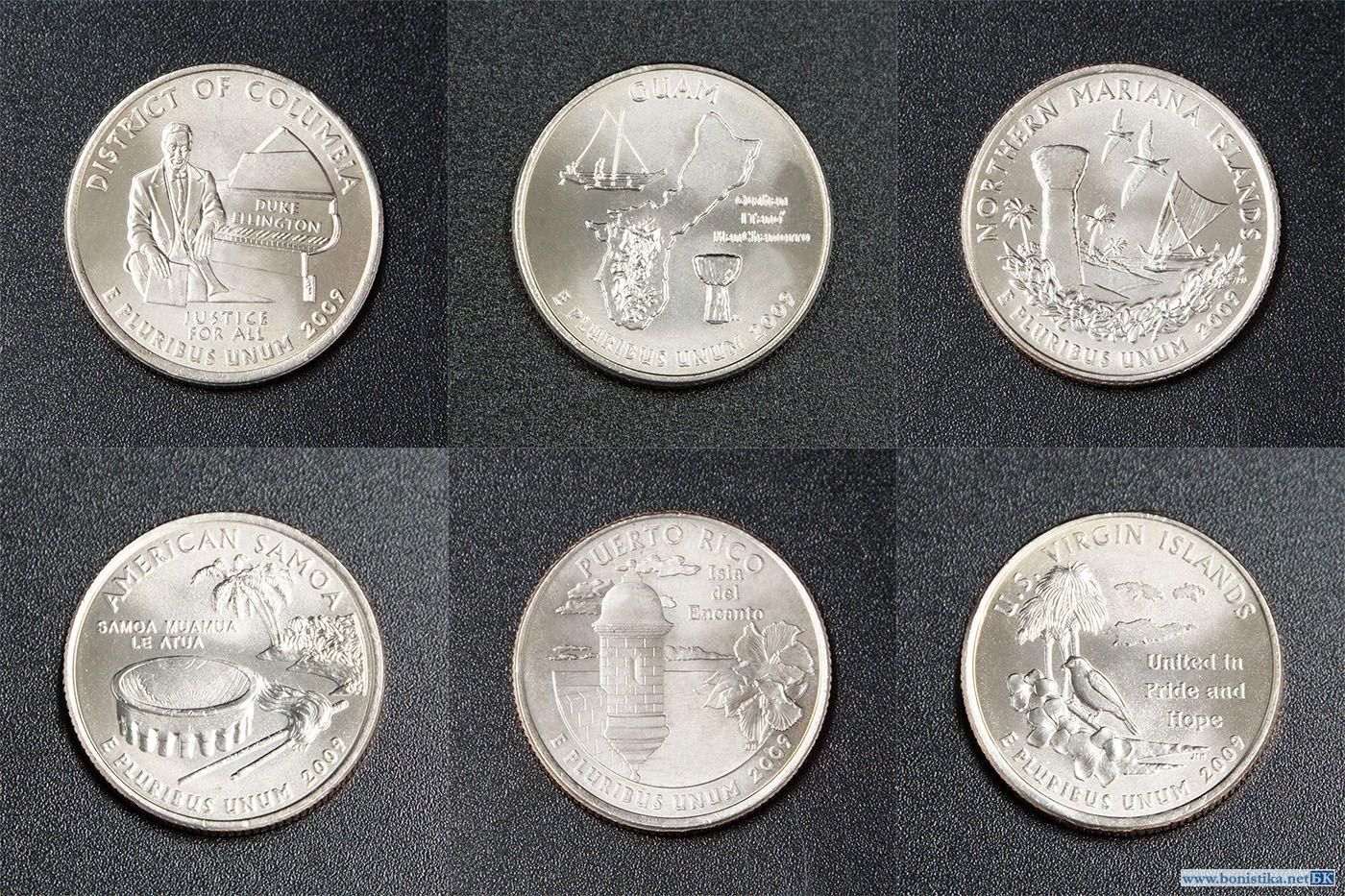 США, 2009, 25 центов 'Штаты и территории США', набор из 6 монет