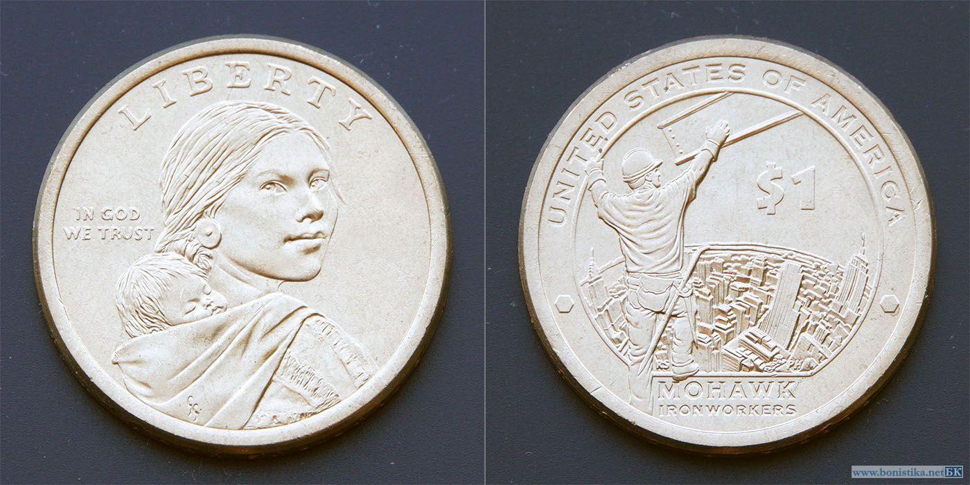 США, 2015, 1 доллар, Сакагавея, индеец мохоки на строительстве небоскреба