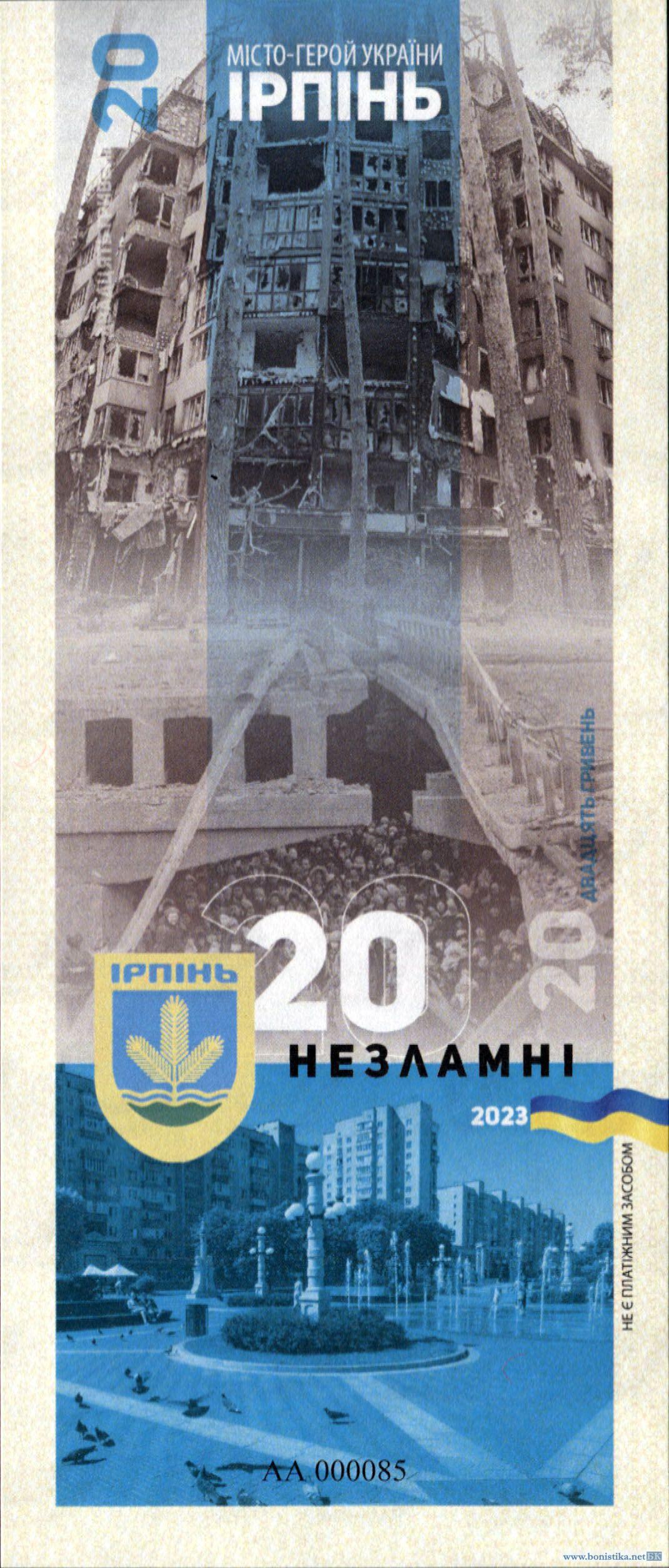Украина, 2023, 20 гривен, сувенирная банкнота 'Ірпінь', в буклете