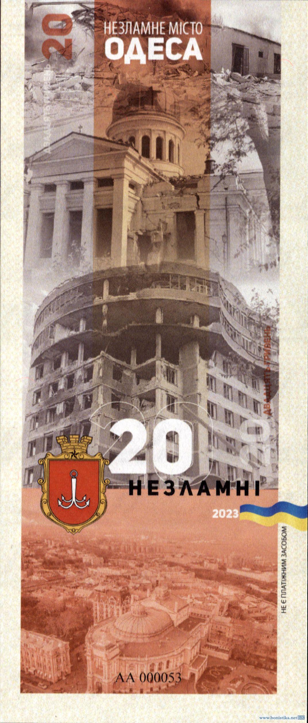 Украина, 2023, 20 гривен, сувенирная банкнота 'Одеса', в буклете