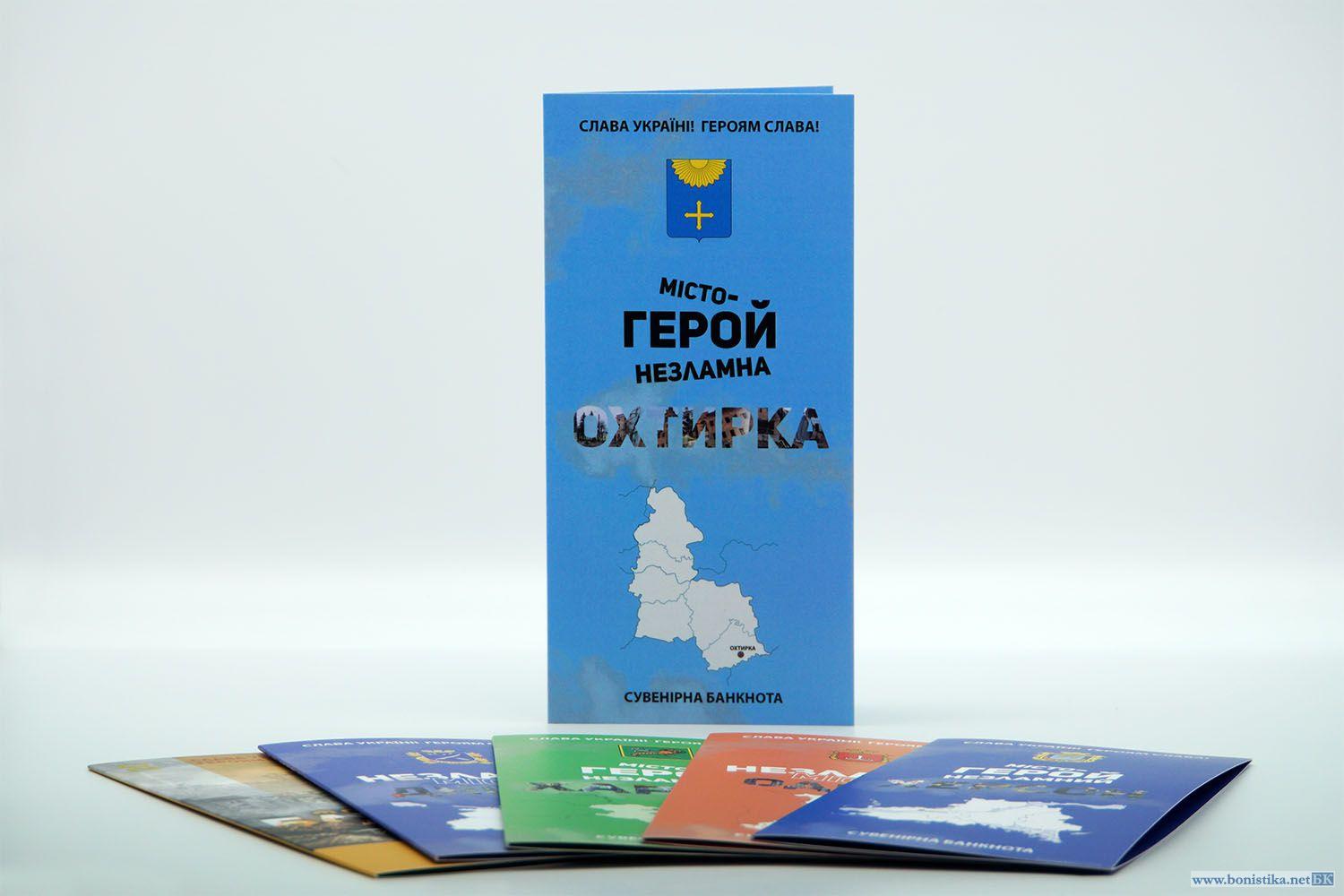 Замовити: 20 гривен, сувенирная банкнота 'Охтирка', в буклете