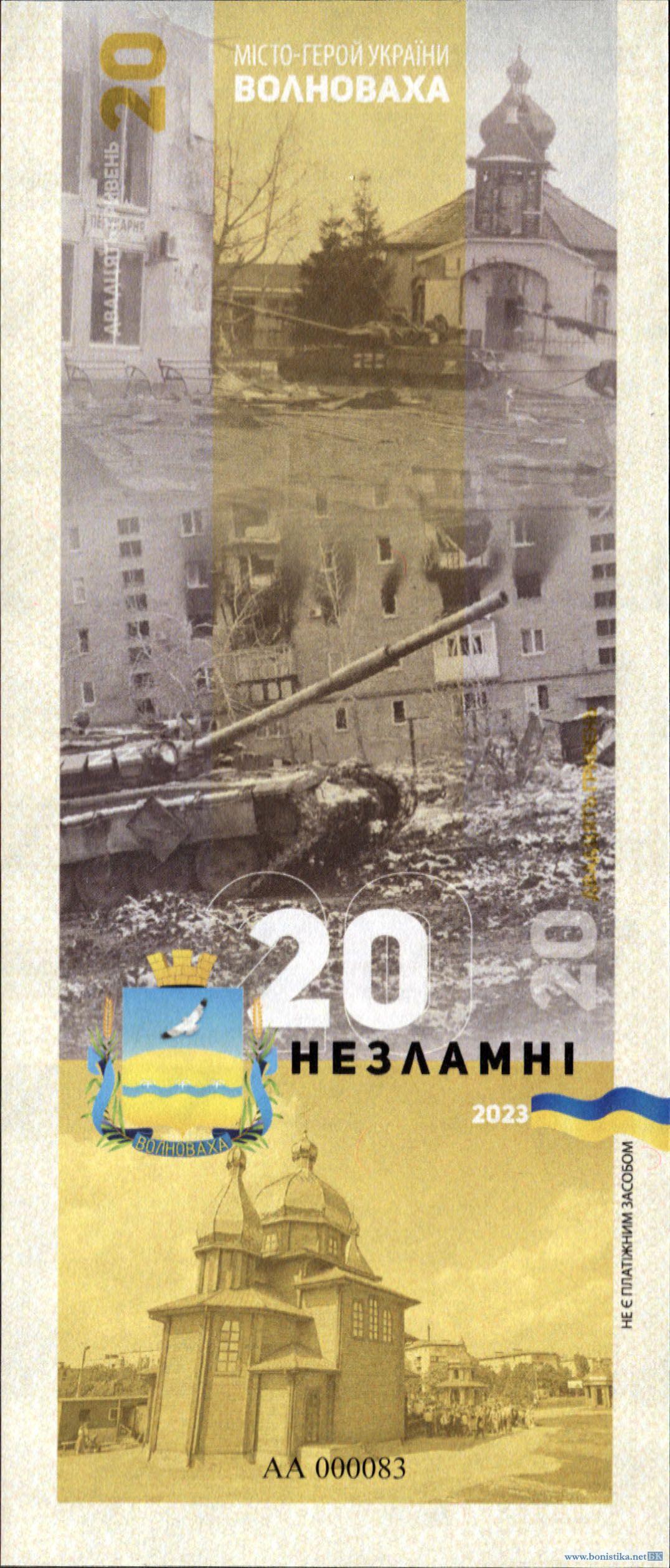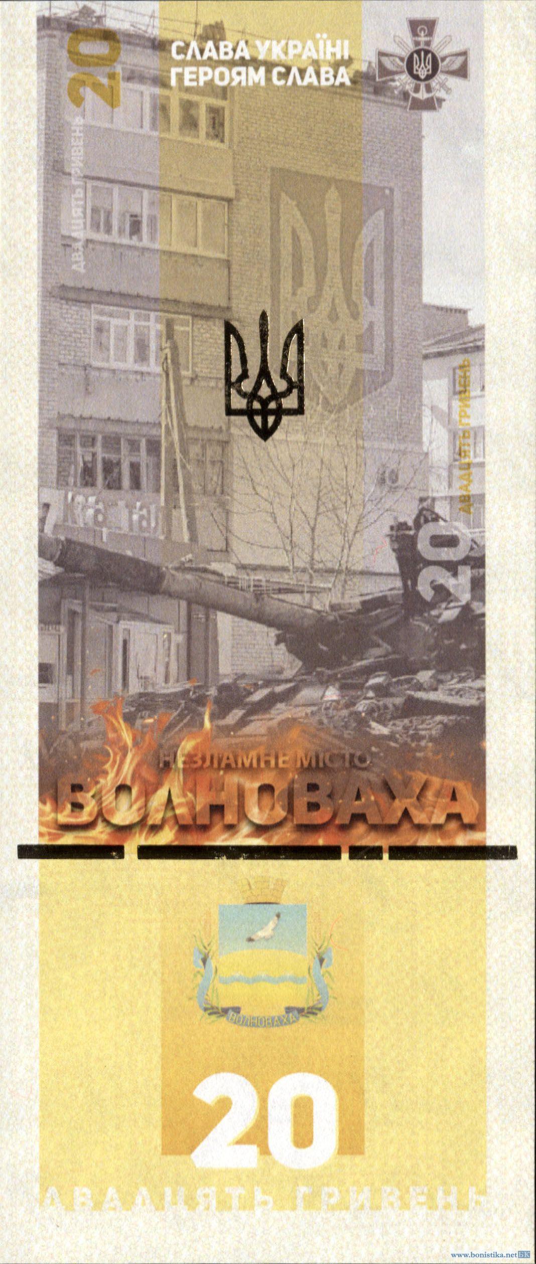 Украина, 2023, 20 гривен, сувенирная банкнота 'Волноваха', в буклете