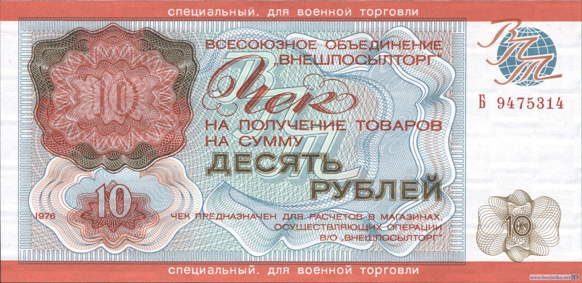 СССР, 1976, 10 рублей для военной торговли