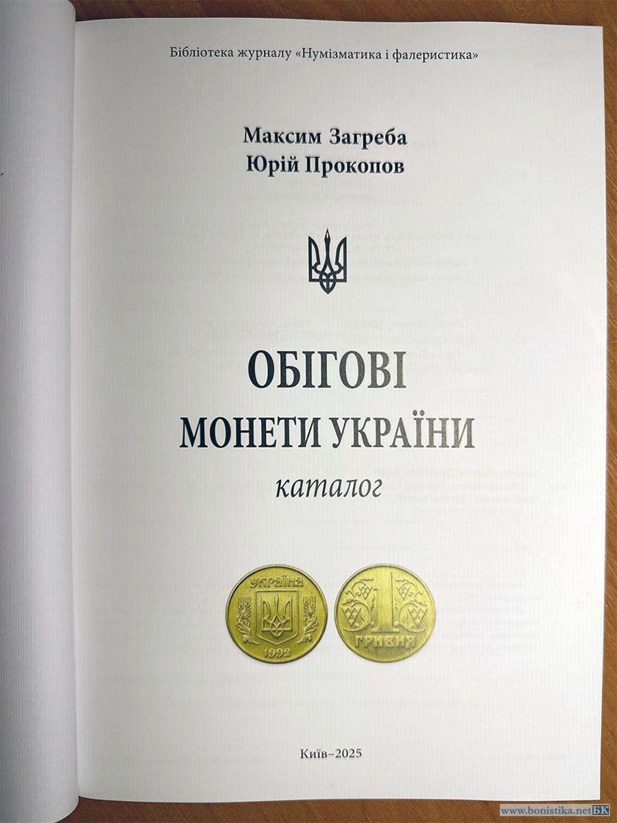 | Каталог містить зображення, технічні характеристики та ринкові ціни на обігові монети України, карбовані з 1992р. 92с, ISBN 978-617-95147-7-7 Наклад 1000 примірників. Київ, 2025 |